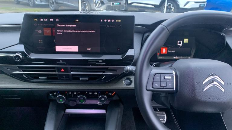 2 Front USB Plugs - 1 USB Type C Charge and Data in Front of Centre Console - 1 USB Type C Charging Only under Centre Front Armrest2 Rear USB Plugs - Charging OnlyCitroen Connect Box with Emergency and Assistance SystemInductive Wireless Smartphone ChargingCoffee Break AlertDriver Information Panel with Lighting Fault IndicatorExtended Head Up Display - e-HUD - with Windscreen ProjectionFront and Rear Parking Sensors and 360-Degree Camera with Rear Camera Wash FunctionOutside Temperature IndicatorTyre Under Inflation Detection19in Alloy Wheels - Aero-X Diamond Cut with Onyx Black Paint and Onyx Black Aero InsertsAcoustic Insulated and Tinted Front and Extra Tinted Rear WindowsAcoustic Insulated and Tinted Windscreen with Head Up Display - eHUDBody Colour Exterior Door HandlesChrome Citroen Chevrons Integrated into Front Grille and Extending Outward into Front Light SignatureCompressor with Puncture Repair KitDoor Mirrors - Electronic - Heated - Folding with Integrated LED Indicator and LED Approach Lighting in Black - Extended Blind Spot Detection and Visiopark 360 DegreesExterior A-pillar Black TrimExtra Tinted - Heated Rear WindowExtra Tinted Rear Quarter Panel Windows with Animation in GlassFront Electric WindowsGloss Black Citroen Chevrons with Chrome Surround - Chrome Citroen Lettering and C5 X Badging on Rear TailgateGloss Black Door MirrorsLocking Wheel NutsRear Electric WindowsRemote 4-Window Opening-Closing with PlipSatin Chrome Trim on Rear BumperAutomatic Illumination of Headlamps when UnlockingAutomatic Welcome and Follow Me Home LightingFront LED Daytime Running LightsLED Fog Lights with Static Cornering Function Integrated into Front Bumper ApronLED Rear Lights - High Level LED Brake Light - LED Rear Number Plate LightingAutomatic Rain-Sensitive Flat Blade Wipers with Integrated Wash FunctionBlack Leather-Effect Central Armrest with OverstitchingBlack Leather-Effect Front and Rear Door Panel InsertsBlack Tie Down Rings for Secure Load StorageBrushed Aluminium Effect PedalsDashboard and Door Panels Decor - Wood Film and GrainDashboard Mounted Black - Backlit - Chrome-Ringed Start-Stop ButtonDriver and Front Passenger Sun Visors with Mirrors and LED LightingElectric Drivers Seat with Memorization Setting - Fore-Aft Adjustment - Backrest Adjustment - Height Adjustment - Seat Angle Adjustment - Lumbar Adjustment and HeadrestElectric Passengers Seat with Fore-Aft Adjustment - Backrest Adjustment - Height