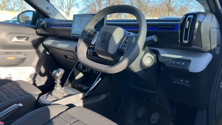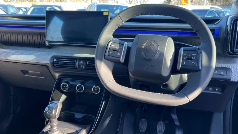 1 USB-C Connection - Data and Charging - On Dashboard1 USB-C Fast Charge in Row 212V Socket On ConsoleCitroen Connect Box Emergency and Assistance SystemConnected ServicesDAB Radio - 6 Loudspeakers - 10.25in Capacitive Touchscreen - Wireless Mirror Screen with Apple CarPlay and Android Auto - BluetoothActive Lane Departure Warning SystemCitroen Head-Up Display - Key Driver Information Projected on to Upper DashboardCruise Control with Speed LimiterGear Shift IndicatorMultifunction Trip ComputerOutside Temperature IndicatorParking Sensors - RearTyre Pressure Monitoring System17in Alloy Wheels - Atacamite - Diamond Cut Bi-ToneBlack Roof BarsBlack Wheel Arch ExtensionsBody Colour Front and Rear BumpersDoor Mirrors - Electrically Heated and FoldingElectric Front Power Windows - Driver Auto Up and Down - Passenger Auto DownGloss Black B and C Pillar FinishGloss Black Exterior Door HandlesGloss Black Rear View Mirror CapsHeated Rear WindowInterior Door Handles - Chrome EffectRear SpoilerRear View Mirror with Integrated Turn IndicatorsTinted Side WindowsVisibility PackAutomatic HeadlightsLED Daytime Running LightsLED Headlights with Electric Levelling1 Litre Bottle Storage in Front and Rear Door Pockets2-3 - 1-3 Split Folding Rear BenchAir Vents - 2 Side and 2 Central on DashboardAnchoring Rings on Boot - x4Bag Support Hook in BootBoot LightCentral Storage with 2 Cup HoldersColour Clip on Front Bumper and C-PillarDay-Night Switchable Interior Rear View MirrorDrivers and Passengers Sunvisor with Courtesy MirrorDrivers Seat Height AdjustmentFront Head Restraint with Height AdjustmentFront Seats Adjustable with Forward-Back Slide and Adjustable BackrestGear Knob - Matt Black with Gloss Black InsertGlove Box - ClosedHeight and Reach Adjustable Steering WheelLED Front Lighting Panel with Map Reading LightsManual Air ConditioningMap Pockets in Back of Driver and Front Passenger Seats with Additional Pocket for Smartphone StoragePadded Fabric Armrests in Front and Rear Doors with LabelsParcel ShelfSteering Wheel - Leather Effect with Gloss Black and Chrome Elements and Integrated Audio Telephone Cruise Control and Speed Limit ControlsThree Rear Seats with Head RestraintsUltra Blue Decor on DashboardUltra Blue Decor on Front DoorsCitroen Advanced Comfort Suspension with Progressive Hydraulic CushionsElectric Power SteeringABS - Anti-Lock Braking SystemAirbags - DriverAutomatic Activation of Hazard Warning