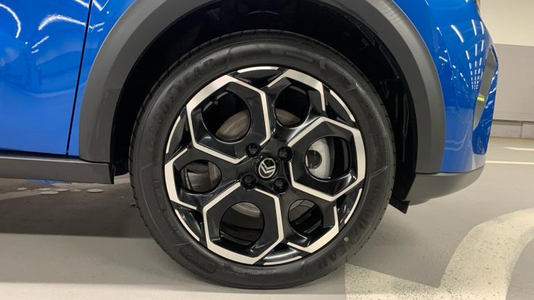 1 USB-C Connection - Data and Charging - On Dashboard1 USB-C Fast Charge in Row 212V Socket On ConsoleCitroen Connect Box Emergency and Assistance SystemConnected ServicesDAB Radio - 6 Loudspeakers - 10.25in Capacitive Touchscreen - Wireless Mirror Screen with Apple CarPlay and Android Auto - BluetoothActive Lane Departure Warning SystemCitroen Head-Up Display - Key Driver Information Projected on to Upper DashboardCruise Control with Speed LimiterGear Shift IndicatorMultifunction Trip ComputerOutside Temperature IndicatorParking Sensors - RearTyre Pressure Monitoring System17in Alloy Wheels - Atacamite - Diamond Cut Bi-ToneBlack Roof BarsBlack Wheel Arch ExtensionsBody Colour Front and Rear BumpersDoor Mirrors - Electrically Heated and FoldingElectric Front Power Windows - Driver Auto Up and Down - Passenger Auto DownGloss Black B and C Pillar FinishGloss Black Exterior Door HandlesGloss Black Rear View Mirror CapsHeated Rear WindowInterior Door Handles - Chrome EffectRear SpoilerRear View Mirror with Integrated Turn IndicatorsTinted Side WindowsVisibility PackAutomatic HeadlightsLED Daytime Running LightsLED Headlights with Electric Levelling1 Litre Bottle Storage in Front and Rear Door Pockets2-3 - 1-3 Split Folding Rear BenchAir Vents - 2 Side and 2 Central on DashboardAnchoring Rings on Boot - x4Bag Support Hook in BootBoot LightCentral Storage with 2 Cup HoldersColour Clip on Front Bumper and C-PillarDay-Night Switchable Interior Rear View MirrorDrivers and Passengers Sunvisor with Courtesy MirrorDrivers Seat Height AdjustmentFront Head Restraint with Height AdjustmentFront Seats Adjustable with Forward-Back Slide and Adjustable BackrestGear Knob - Matt Black with Gloss Black InsertGlove Box - ClosedHeight and Reach Adjustable Steering WheelLED Front Lighting Panel with Map Reading LightsManual Air ConditioningMap Pockets in Back of Driver and Front Passenger Seats with Additional Pocket for Smartphone StoragePadded Fabric Armrests in Front and Rear Doors with LabelsParcel ShelfSteering Wheel - Leather Effect with Gloss Black and Chrome Elements and Integrated Audio Telephone Cruise Control and Speed Limit ControlsThree Rear Seats with Head RestraintsUltra Blue Decor on DashboardUltra Blue Decor on Front DoorsCitroen Advanced Comfort Suspension with Progressive Hydraulic CushionsElectric Power SteeringABS - Anti-Lock Braking SystemAirbags - DriverAutomatic Activation of Hazard Warning