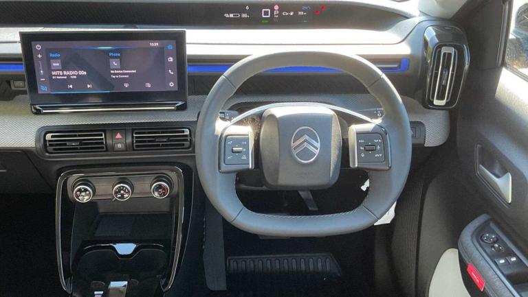 Citroen Head-Up Display, Visibility Pack, DAB Radio - 6 Loudspeakers - 10.25in Capacitive Touchscreen - Wireless Mirror Screen with Apple CarPlay and Android Auto - Bluetooth, Air Vents - 2 Side and 2 Central on Dashboard, Anchoring Rings on Boot - x4, Bag Support Hook in Boot, Central Storage with 2 Cup Holders, Colour Clip on Front Bumper and C-Pillar, Drivers Seat Height Adjustment, Drivers and Passengers Sunvisor with Courtesy Mirror, Fixed Boot Light, Front Head Restraint with Height Adjustment, 1 Litre Bottle Storage in Front and Rear Door Pockets, Front Seats Adjustable with Forward-Back Slide and Adjustable Backrest, Glove Box - Closed, Grey Decor on Dashboard, Grey Decor on Front Doors, Height and Reach Adjustable Steering Wheel, 2-3 - 1-3 Split Folding Rear Bench, High Console with Armrest and Closed Storage, LED Front Lighting Panel with Map Reading Lights, Manual Air Conditioning, Map Pockets in Back of Driver and Front Passenger Seats with Additional Pocket for Smartphone Storage, Padded Fabric Armrests in Front and Rear Doors with Labels, Parcel Shelf, Standard Day-Night Switchable Interior Rear View Mirror, Steering Wheel - Leather Effect with Gloss Black and Chrome Elements and Integrated Audio - Telephone - Cruise Control - Speed Limit Controls, Three Rear Seats with Head Restraints, 1 USB-C Connection - Data and Charging - On Dashboard, 1 USB-C Fast Charge in Row 2, 1 USB-C Fast Charge on High Console, 12V Socket On Console, 7.4kW Single-Phase Onboard Charger, Active Lane Departure Warning System, Automatic Intelligent Beam Headlights, Citroen Advanced Comfort Suspension with Progressive Hydraulic Cushions, Citroen connect box emergency and assistance system, Connected Services, Cruise control with speed limiter, Electric Power Steering, Fast Charging DC 100kW, LED Daytime Running Lights, LED Headlights with Electric Levelling, Mode 3 Charging Cable - Single-phase 7kW - 6 Metres, Multifunction Trip Computer, Outside Temperature Indicator, Parking Sensors - Rear, Tyre Pressure Monitoring System, e-Toggle Gear Selector, 17in Alloy Wheels - Atacamite - Diamond Cut Bi-Tone, Black Roof Bars, Black Wheel Arch Extensions, Body Colour Front and Rear Bumpers, Electric Front Windows with Auto Down for the Driver and Auto Down for the Passenger, Electric Rear Windows, Exterior Mirrors - Electric - Heated - Electrically Folding, Gloss Black Exterior Door Handles, Gloss Black Finish - B and C Pillar, Gloss Black Rear View Mirror Caps, Heated Rear