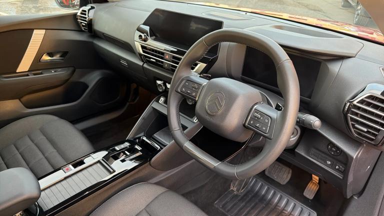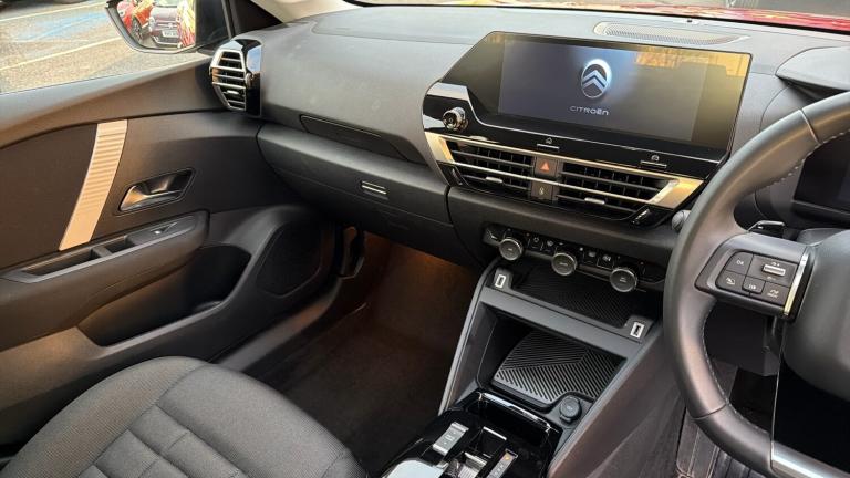 This 25-plate Citroën C4 Plus Hatchback offers a stylish, comfortable, and efficient driving experience, perfectly suited to modern motoring. Powered by the lively 1.2-litre petrol engine producing 130bhp and paired with a smooth automatic gearbox, it delivers responsive performance while remaining economical and easy to drive. The distinctive Citroën design gives the C4 a confident road presence, complemented by a refined and well-appointed interior focused on comfort and practicality. The Plus specification provides a generous level of equipment, making every journey relaxing and connected, whether you’re commuting or heading out on longer trips. With five doors and a versatile hatchback layout, it offers excellent space for passengers and luggage alike. As a 25-plate model, this Citroën C4 benefits from the latest technology and the reassurance of being nearly new, making it an excellent choice for drivers seeking comfort, style, and everyday usability in one smart package..Air Conditioning, Climate Control, Metallic Paint, Cruise Control, Satellite Navigation, Alloy Wheels, Leather Seats, DAB Radio, Bluetooth, Parking Sensors, Stop Start, Low Mileage, USB, Manufacturer Approved, Apple-Android Play, Rear Camera& Auto Lights, Rear wiper, Front and rear electric windows, Rain sensing automatic front windscreen wipers, Tinted side, rear quarter and tailgate windows with matt black detail, ABS, ESP, Hill start assist, Electric parking brake, Electronic Power Steering (EPS), Advanced comfort suspension - double hydraulic stops on front suspension and single on rear suspension, Apple car play and Android auto (wireless or cable connection possible), Cruise control + speed limiter, In-crash braking, Citroen Smart Pad Support - integrated support for attaching a tablet computer for front passenger, Citroen connect box emergency and assistance system, Rear parking sensors plus reversing camera with top rear vision, Natural voice recognition