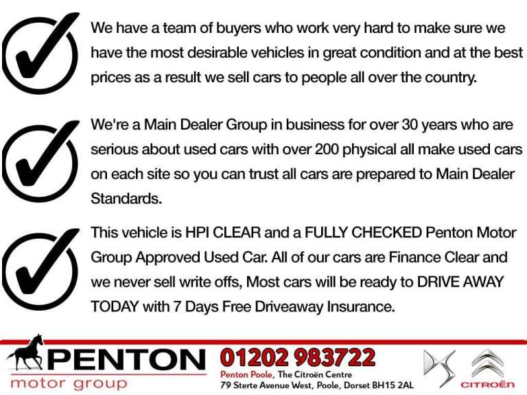 NEW SHAPE, 25 REG, VERY TOP SPEC MAX in AUTO with the SOUGHT AFTER 1.2 PURETECH EAT8 PETROL ENGINE, TOUCHSCREEN with APPLE CARPLAY and ANDROID AUTO, REAR SENSORS, CRUISE CONTROL, DUAL ZONE CLIMATE, KEYLESS ENTRY and START, HEAD UP DISPLAY, PRIVACY GLASS, LED HEADLIGHTS, CITROEN WARRANTY, LOOKS STUNNING in BLACK METALLIC, CITROEN MAIN DEALER, ASK ABOUT OUR 3 YEAR PENTON SERVICE PLAN NOW ONLY £699, We have a team of buyers who work very hard to make sure we have the most desirable vehicles in great condition and at the best prices as a result we sell cars to people all over the country, We're a Main Dealer Group in business for over 30 years who are serious about used cars with over 250 physical all make used cars on each site so you can trust all cars are prepared to MAIN DEALER STANDARDS, This vehicle is HPI CLEAR and a FULLY CHECKED Penton Motor Group Approved Used Car. All of our cars are Finance Clear and we never sell write offs, Most cars will be ready to DRIVE AWAY TODAY with 7 Days Free Driveaway Insurance. Finance Available. ALL PART EXCHANGES WELCOME. Warranty Included. Penton Citroen THE BIG Citroen Dealer. Citroen C4 instock including Exclusive. Selection. Feel. Flair. Edition. Platinum. Sense. Shine. Plus. Diesel. 110. 115. 120. 130.0Auto. Manual. ETG & EAT some Leather. Sat Nav. Sunroof. THE PENTON WHOLESALE PRICE:
