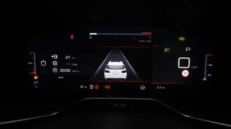 12V Power Outlet and 2x USB-A Sockets - 1x Charge Plus Data - 1x Charge Only - on Front Part of Central Console, My Citroen Assist, My Citroen Play featuring Android Auto and Apple CarPlay, Radio Aerial Integrated into Rear Windows, USB-A Socket - Charge Only - on Rear Part of Central Console, Cruise Control with Speed Limiter, Tyre Under Inflation Detection, 18in Alloy Wheels - Pulsar Diamond-Cut Bi-Tone, Acoustic Laminated Windscreen with Rain and Brightness Sensors, Anti-Theft Locking Wheel Bolts, Body Colour Front Bumper with Air Curtain - Silver Painted Skid Plate and Matt Black Lower Section, Brakes - Ventilated Discs - Front and Rear, Door Mirrors - Glossy Black, Electric - Heated - Folding Door Mirrors with LED Approach Lighting and Blind Spot Monitoring Indicators, Gloss Black Exterior Door Handles, Gloss Black Longitudinal Roof Bars, Glossy Black Colour Pack, Magic Wash, Roof - Perla Nera Black Bitone, Sequential Electric Windows Front and Rear Side with Anti Pinch Function, Stainless Steel Window Finishers, Tinted Row 1 Windows and Dark Tinted Row 2 C-Pillar and Tailgate Windows, Upper Body Colour and Lower Matt Black Rear Bumper, Automatic Headlights with Welcome and Goodbye Lighting, Front Fog Lights with Static Cornering Function, LED Headlights with LED Daytime Running Lights and Visual Signature, LED Rear Lights with Visual Signature, 12.3in Digital Instrument Cluster with Customisable Zones and Colour Schemes, 2 Position Boot Floor, 4-Way Adjustable Steering