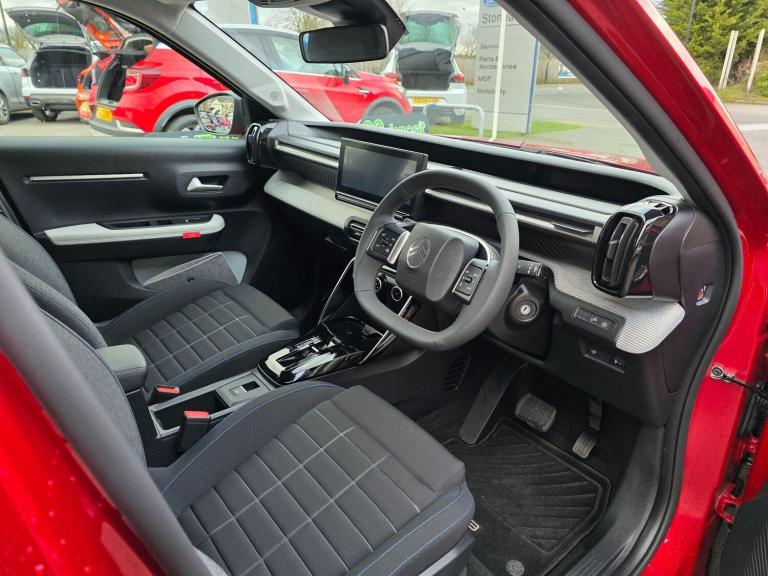 This 2025 Citroen e-C3 Standard Range PLUS is an exceptional example, boasting incredibly low mileage of just 1218 miles for its age and having had only one owner from new. As an all electric vehicle, this PLUS trim model features a substantial 44 kWh battery, offering a maximum range of 202 miles when new. Charging is convenient, with a full charge at home using a 7kW charger taking approximately 5 hours and 33 minutes, while rapid public charging can take you from empty to 80% in as little as 34 minutes.Inside, you'll find a wealth of modern technology designed to enhance your driving experience. The 10.25 inch capacitive touchscreen includes DAB radio with 6 loudspeakers, wireless Mirror Screen functionality for seamless Apple CarPlay and Android Auto integration, and Bluetooth connectivity. Enjoy the clarity of LED headlights with electric levelling and the innovative Citroen Head Up Display. Practicality is also key, with rear parking sensors and manual air conditioning ensuring comfort and ease of use on every journey. These features collectively demonstrate how this e-C3 offers a superior and more connected driving experience compared to other vehicles in its class.