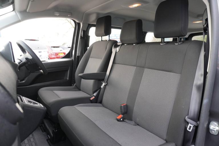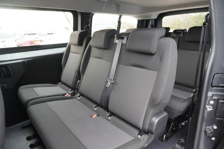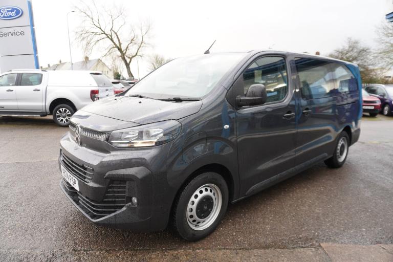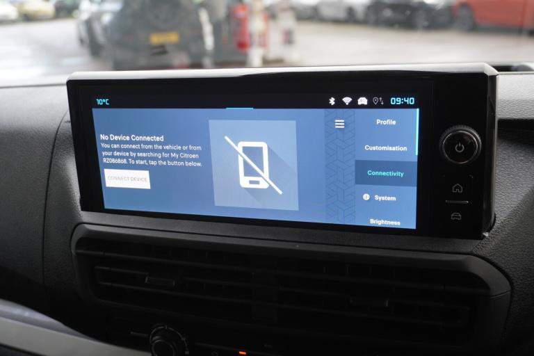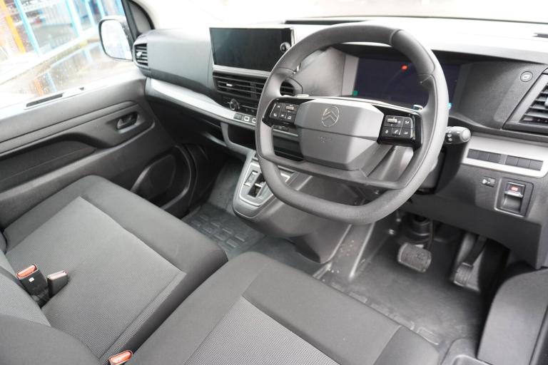 3-point retractable front seatbelts, 3-point retractable rear seatbelts, ABS/EBD, Adaptive driver and front passenger airbags, Driver/front passenger head+thorax side airbags, Electrically operated child locks on rear doors, Electronic parking brake, Electronic stability control, Front optimised safety headrests and 3 x rear retractable headrests with height adjustable, Front seatbelt unfastened audible+visual warnings, Front ventilated disc brakes and rear disc brakes, Hill start assist, Regenerative braking operated by paddles behind steering wheel 3 levels, Trailer stability control, Tyre pressure indirect sensor, 10 inch HD touchscreen, 10 inch digital driver's cluster, Bluetooth telephone facility, Citroen connect box emergency and assistance system, Citroen connect box enabling deferred charging and cabin temperature pre-conditioning, Cruise control and speed limiter, Driver attention alert 3 (DAA3), e-Toggle driving selector, eCall emergency call system, EPAS, Exterior temperature indicator with ice warning, Multi function trip computer, Multi-mode toggle (Eco, Normal, Power), Rear park assist, Tailgate, Voice recognition, Wireless mirror screen with apple carplay and android auto, Acoustic laminated windscreen, Automatic dimming headlights, Black door mirrors, Black exterior door handles, Black front and rear bumpers, Black grained side sliding door rail covers, Black side rubbing strips, Electric adjustable heated door mirrors, Electric front windows/one touch facility with pinch protection, Halogen headlights, Halogen rear fog lights, Halogen rear lights including braking and turn signal function, Halogen rear number plate lights x2, Halogen third brake light, Headlight left on when door open audible warning, Heated rear windscreen with rear wash wipe, LED daytime running lights, Prismatic central rear view mirror, Roof mounted antenna, Solid paint, Twin sliding rear doors, 12V socket (x1) in lower glovebox, 2X cup holders in dashboard mounted, Driver and passenger side grab handles, Driver seat adjustable armrest, Driver seat manual adjustment in longitudinal and back rest angle, Driver seat mechanical height adjustment, Driver seat mechanical lumbar adjustment, Dual front passenger bench seat with under seat storage, Electric power steering with reach and rake adjustable steering column, Fixing ring x6 in load area, Flooring - TPO plastic carpet, Front door pockets including storage for 1.5L bottles, Front interior light with reading