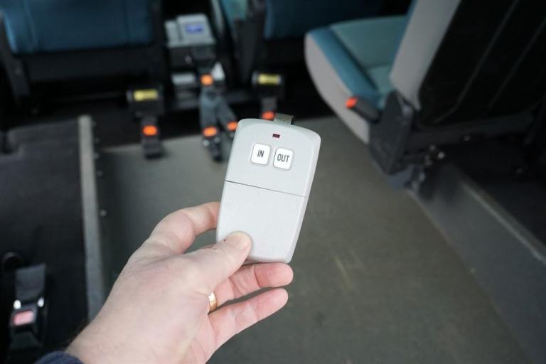4 Point Wheelchair Securing with Lap and Diagonal Seat Belt for the Wheelchair User.