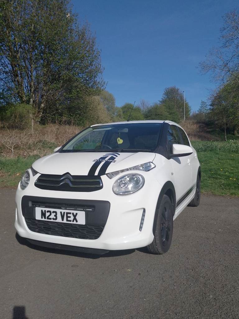 Citroen C1 Urban Ride 1.0 Vti 5 door hatchback 2020 / only 11690 miles. White with black trim. Excellent condition throughout and drives very well. Long MOT until 7th December 2026 with no advisories. Ulez compliant car. Recorded as category S. As a C1 Urban Ride, this model features a 1.0L petrol engine and meets Euro 6 emission standards. This Citroen C1 stands out with its impressive fuel economy of 52 mpg, meaning fewer trips to the petrol station. It also falls into a low insurance group, potentially saving you money on your premiums. Features of the car include 15in Alloy Wheels - Planet Black, 7in Touch Drive Interface, Air Conditioning, Cornering Stability Control, DAB Digital Radio - MP3 Audio System with 4 Speakers - Bluetooth Handsfree - USB Socket and Steering Mounted Controls, ESP - Electronic Stability Programme, Electrically Heated and Adjustable Door Mirrors, Reversing Camera, Urban Ride Colour Pack, Urban Ride Body Graphics, Wheel Arch Extensions, Electric windows and Remote Central locking. Available to view or for a test drive in the G32 area of Glasgow. Please phone for further information or to arrange a viewing.