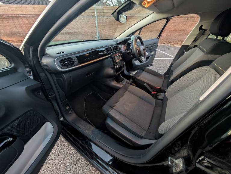 Lovely 2020 Citroen C3 1.2 Feel PureTech 5dr finished in highly desirable Power black with contrast white roof and grey interior. Being the Feel model it benefits from extras such as a 7-inch touchscreen with DAB, Bluetooth, Satellite Navigation connectivity and USB, cruise control with a speed limiter, air conditioning, lane departure warning, remote locking with 1 key, and 16-inch alloy wheels. The 1.2 petrol engine drives amazing, with no knocks or rattles and is extremely cheap to run giving a combined MPG in excess of 60MPG, insurance group 11 so very cheap to insure it . MOT until march 2026. Air Conditioning; Alloy Wheels; Cruise Control; Safety Belt Pretensioners