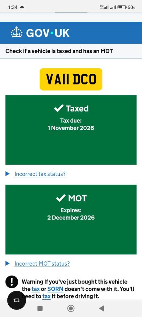 This vehicle has not been reported stolen, scrapped, exported or flagged as unroadworthy.