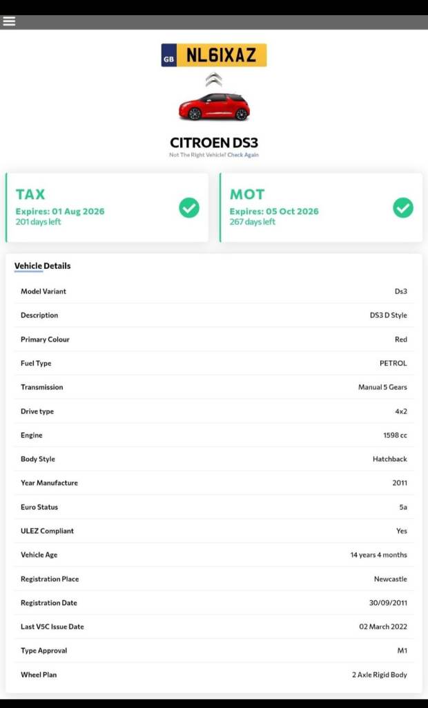 Our vehicle history check is provided for guidance only. Please check all the details with the seller before purchasing