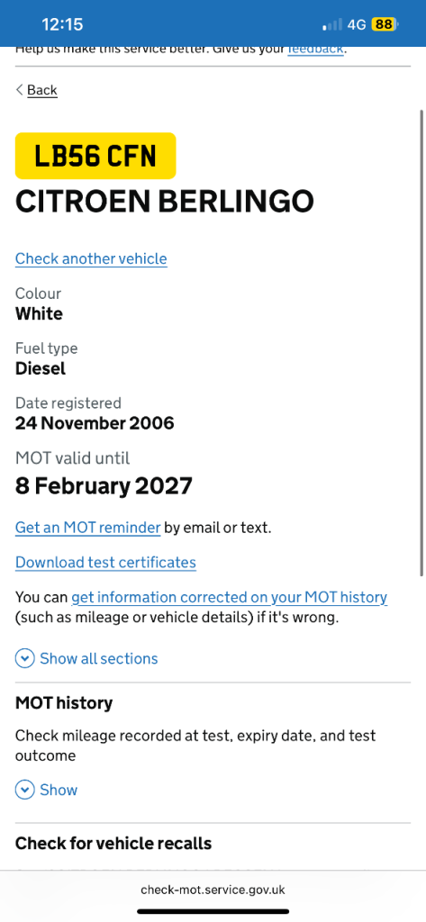 Our vehicle history check is provided for guidance only. Please check all the details with the seller before purchasing