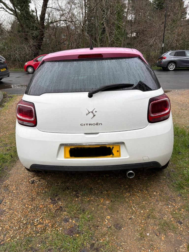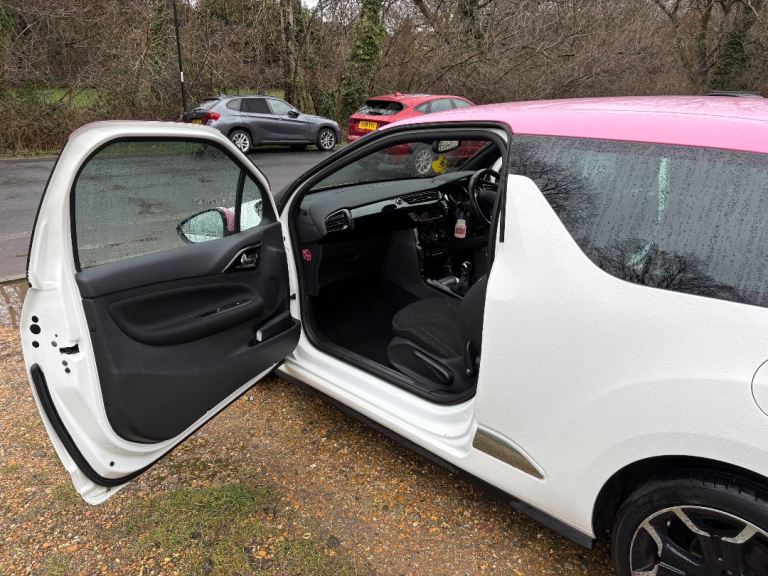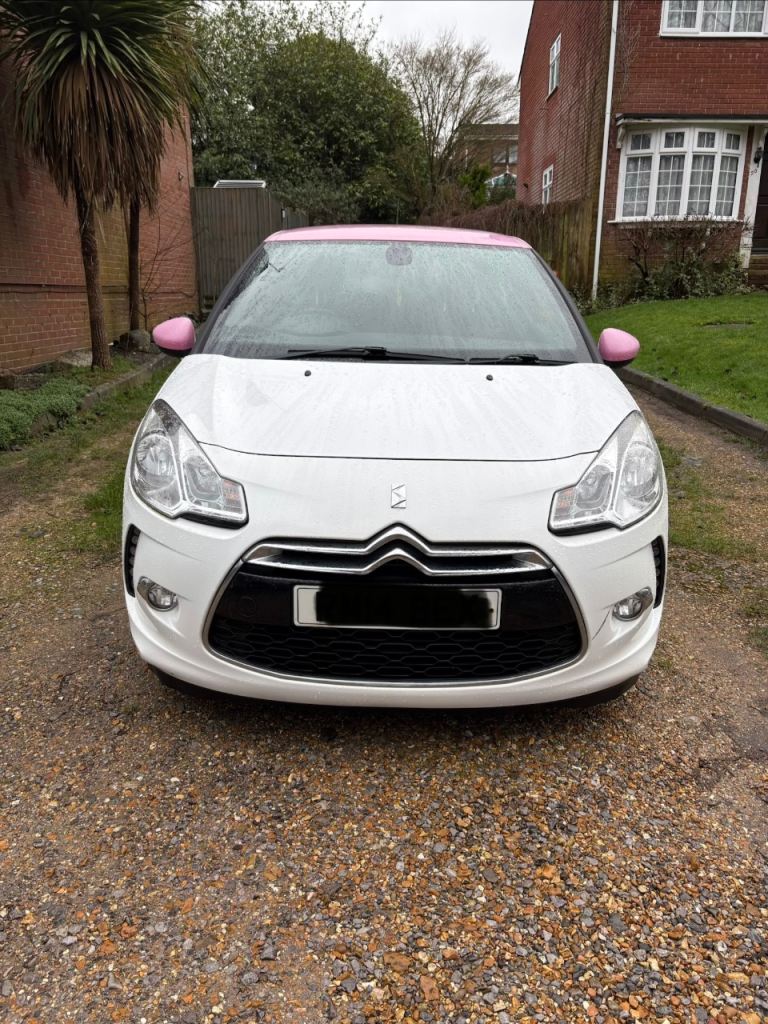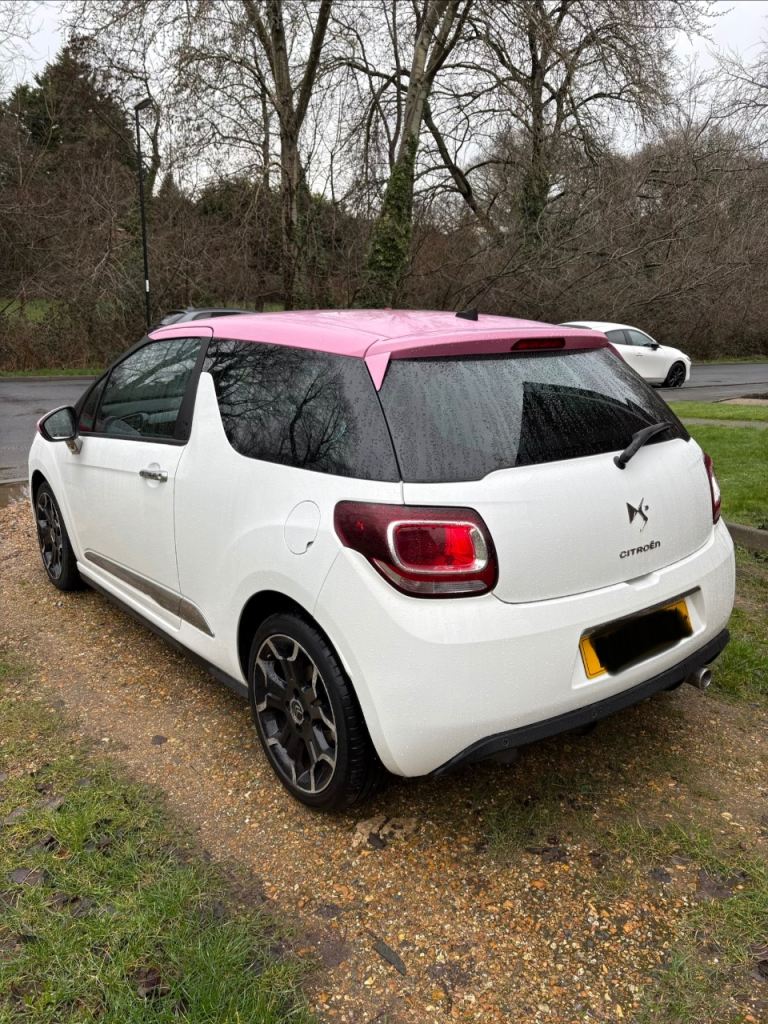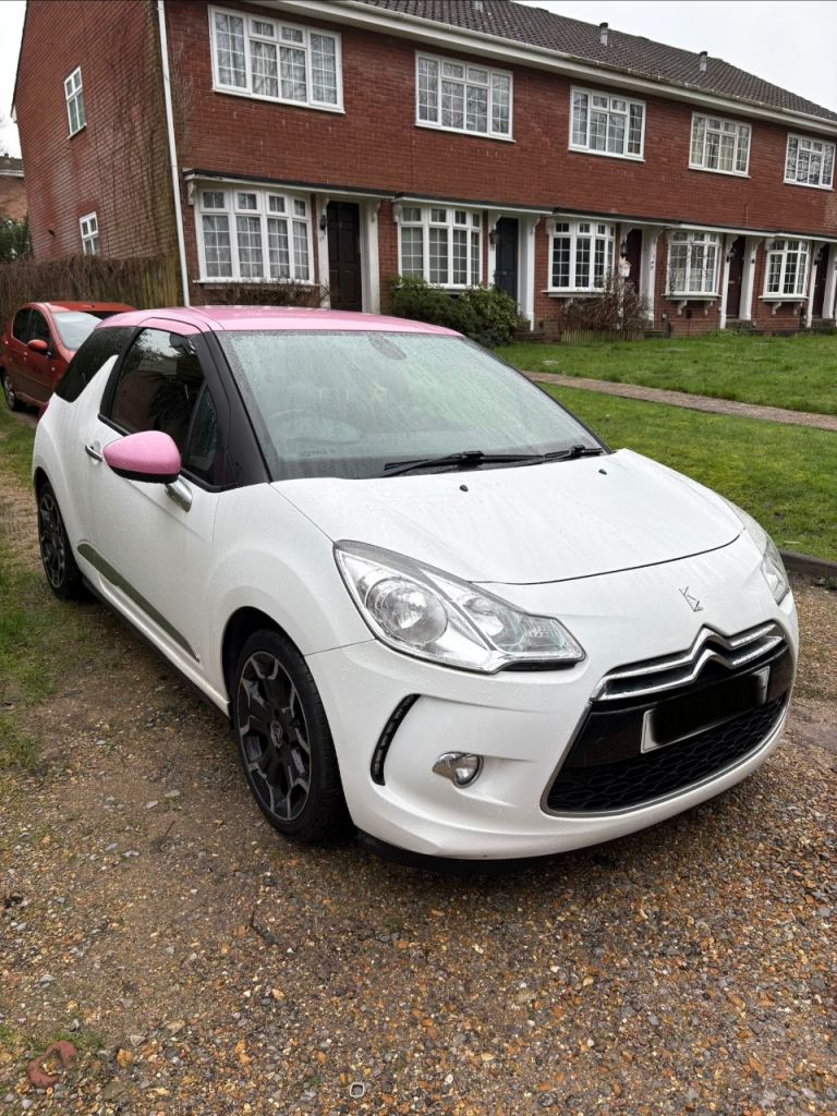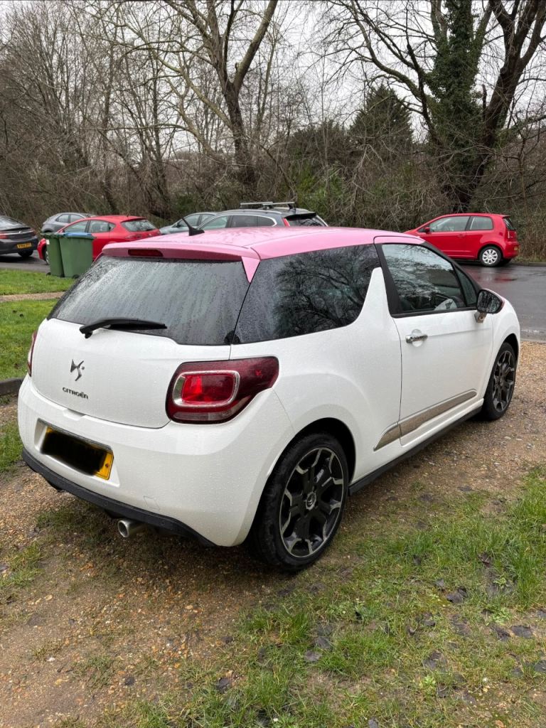 2014 Citroen DS3 1.6L for sale – white with a personalised pink roof that really makes it stand out.