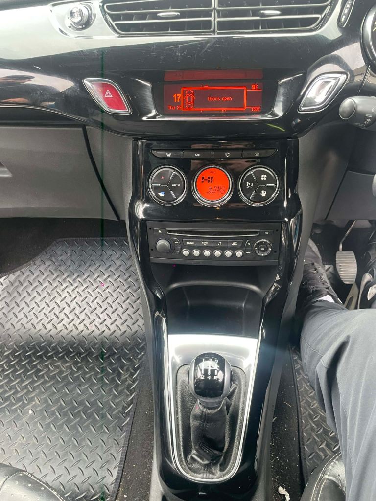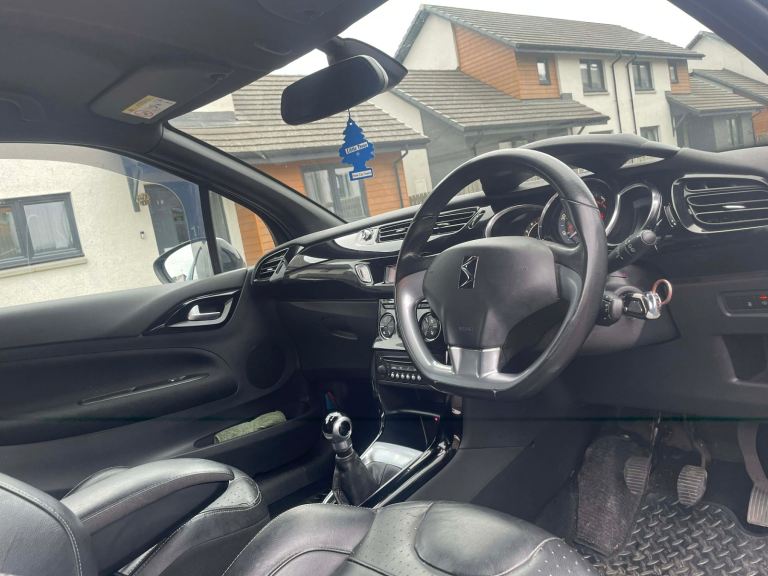 Citroen ds3 dstyle plus E HDI edition 1.6 diesel starts drives like new great on diesel very economical for a first car looks and drives absolutely amazing no major issues will do somebody a great car 5 speed manual transmission clutch gearbox engine suspension all perfect condition will only need handbrake cable sorting cheapest fix everything else all good top spec black tinted windows black leather seats no rips or tears great condition low miles only 109k no warning lights on dashboard no knocks or bangs no unwanted noise body work has some age related marks nothing major electric windows power steering trip computer cruise control alloy wheels good tier thread spare tier jack just been serviced ok boot space heating ac all working day time lights 5months mot cheap tax only £20 per year great mpg radio cd player built in usb aux parking sensors overall great car