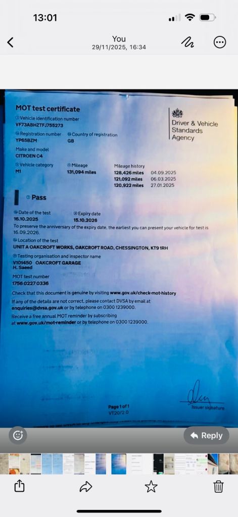 MOT finish 15/10/2026