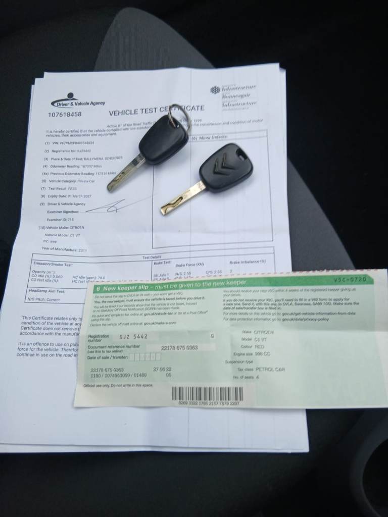 PENDING CITROEN C1 VT HATCHBACK 1000CC PETROL ENGINE FULL YEAR'S MOT CERTIFICATE π₯