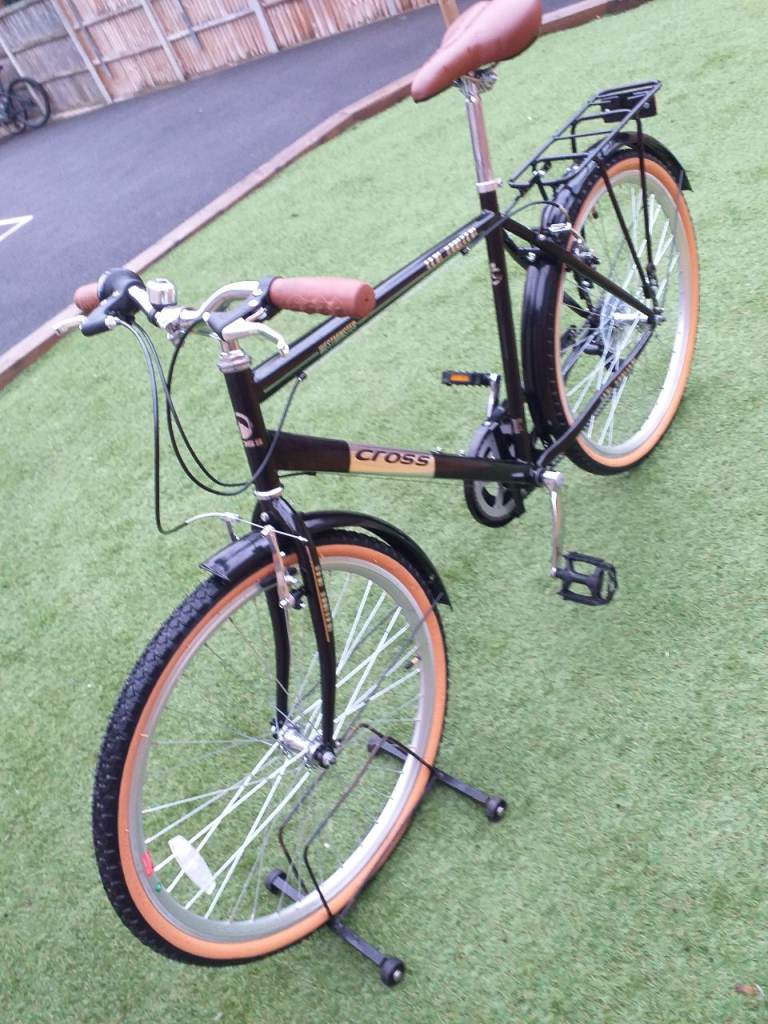 With 26 inch hybrid alloy wheels and new hybrid tyres.