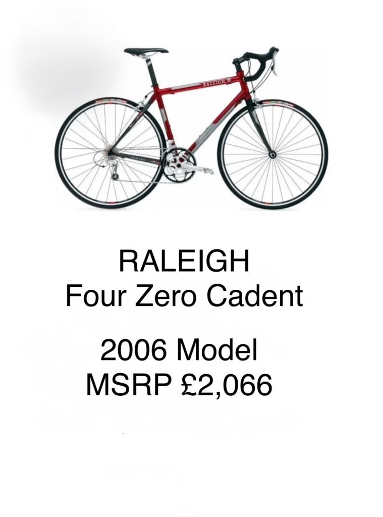 The Rare Raleigh Four Zero Cadent Racing Bike from 2006 has only been used 3/4 times and was priced at over £2,000 new. It’s is in excellent condition. This highly sought-after bicycle is a collector's item for enthusiasts of Raleigh bikes. With its sleek design and high-quality components, this racing bike offers a thrilling riding experience for those looking to stand out from the crowd.