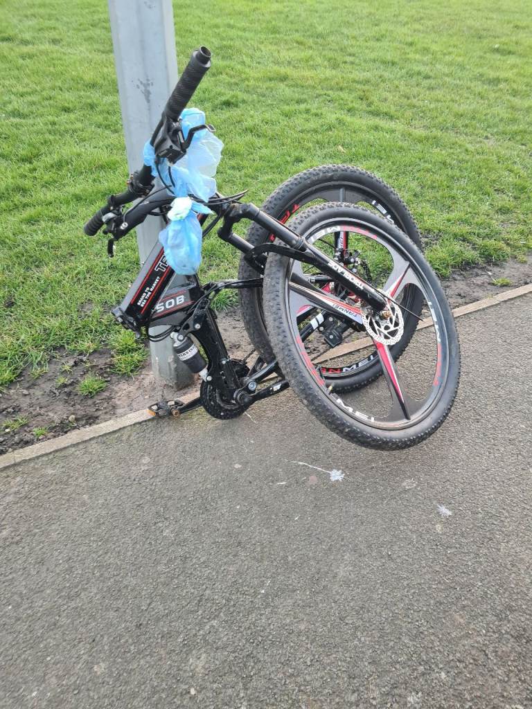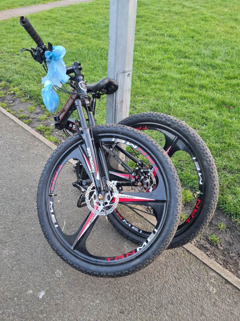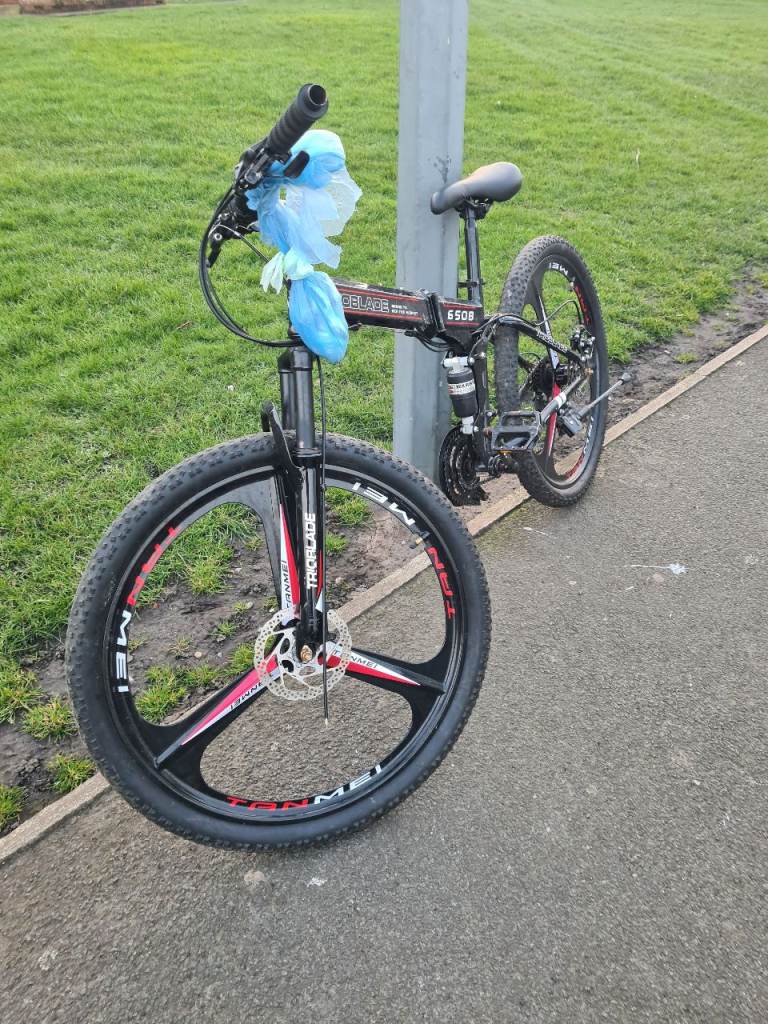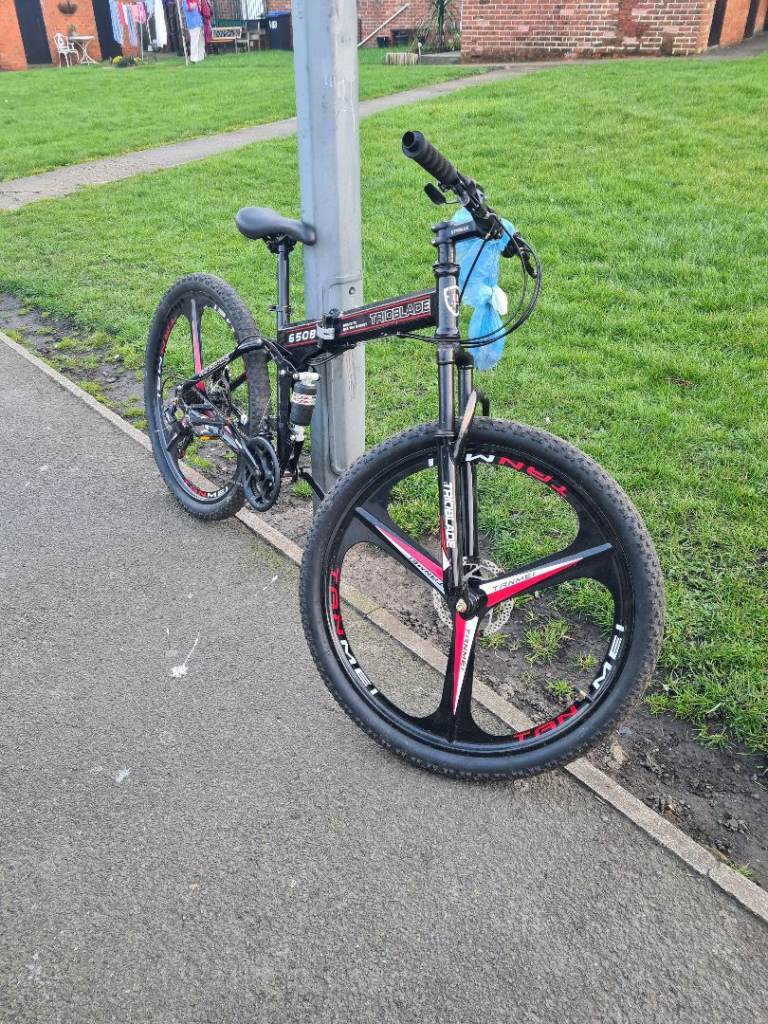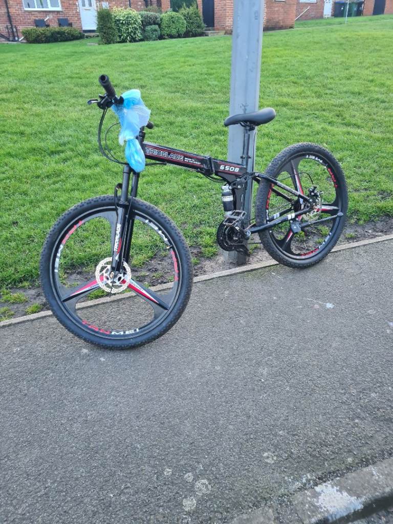 Got this bike here for sale its a trio blade folding suspension mountain bike very fair condition and good working order other than the front brake needs sorting all the bits are hanging kn the handle bar good little bike fir someone and i think its cheap at £50