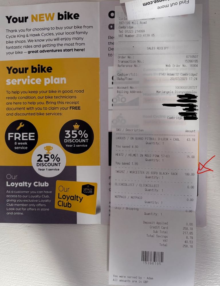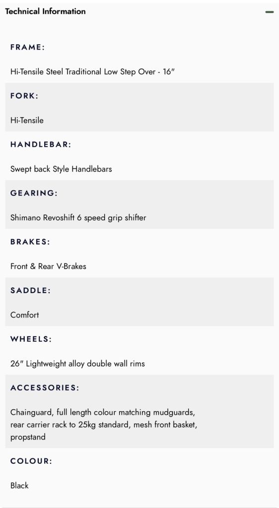 Worcester Lifestyle Bike purchased on 20/7/2023 (receipt attached in photo gallery). Rarely used - as good as new. It is extremely light and easy to cycle with a comfortable saddle. GEARING:Shimano Revoshift 6 speed grip shifter.