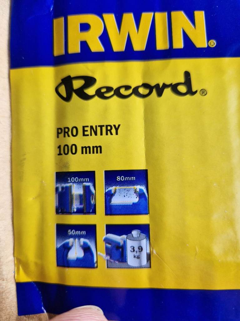 Irwin Record Pro Entry 100 mm. Jaw width 10 cm. Max. jaw opening 8 cm. Weight 4 kg. Personal pickup - Winsford (CW7 1GL). Shipping for an extra fee.