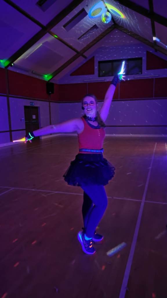 Clubbercise is an aerobic exercise class with a fusion of dance, toning and combat in easy to follow moves with high & low impact options for all fitness levels. Suitable for all aged 16 & above. Classes are taught in a darkened room with flashing disco lights, UV lights and trademark LED glowsticks set to a soundtrack from the 90s to now.