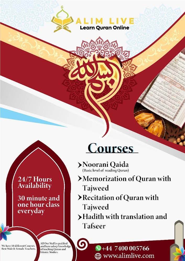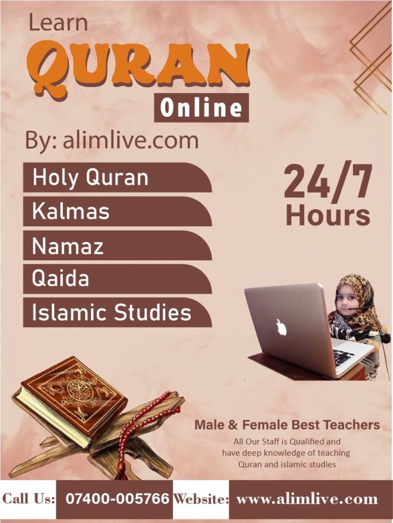 LEARN QURAN, TAJWEED, ISLAMIC STUDIES, DUAS, PRAYERS, TAFSEERUL, HIFZUL QURAN & ARABIC LANGUAGE AT YOUR OWN PREFERABLE TIMINGS.