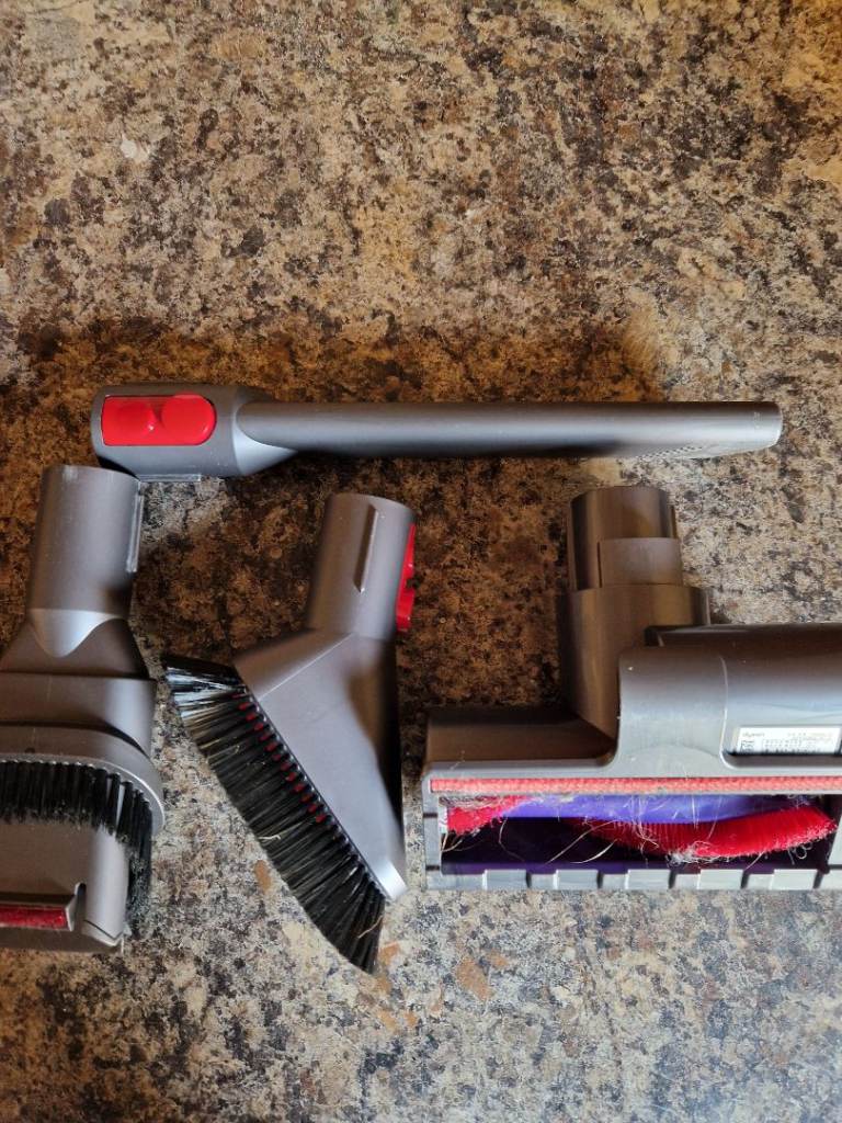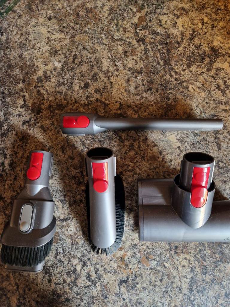 A selection of Dyson V10 cordless vacuum cleaner accessories - in good condition.