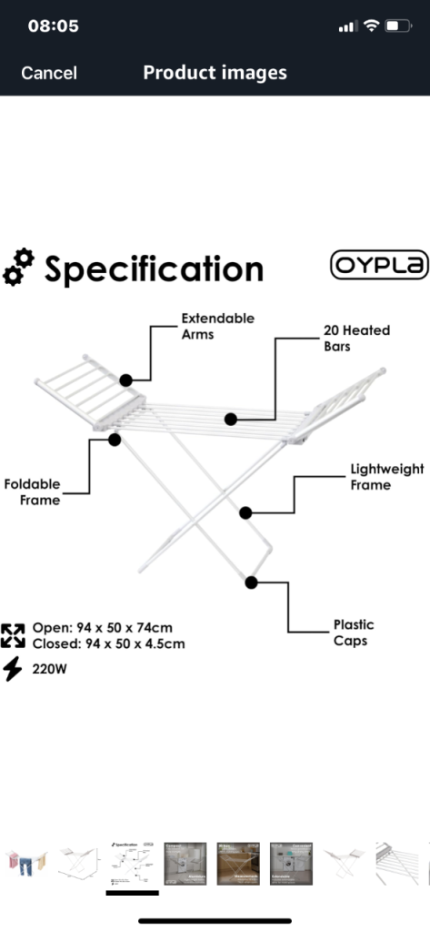 Heated 20 bar lightweight aluminium foldable clothes airer