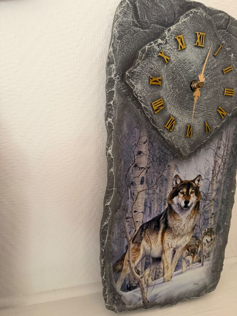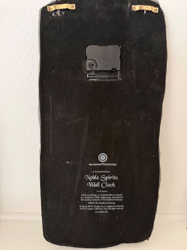The Bradford Exchange Noble Spirit Wall Clock is a limited edition piece featuring a striking wolf design. Made from mixed materials, this 21st-century clock is powered by a battery-operated quartz movement, ensuring accurate timekeeping. Perfect for collectors or those looking to add a unique decorative touch to their home, this wall clock combines quality craftsmanship with a powerful and iconic design.