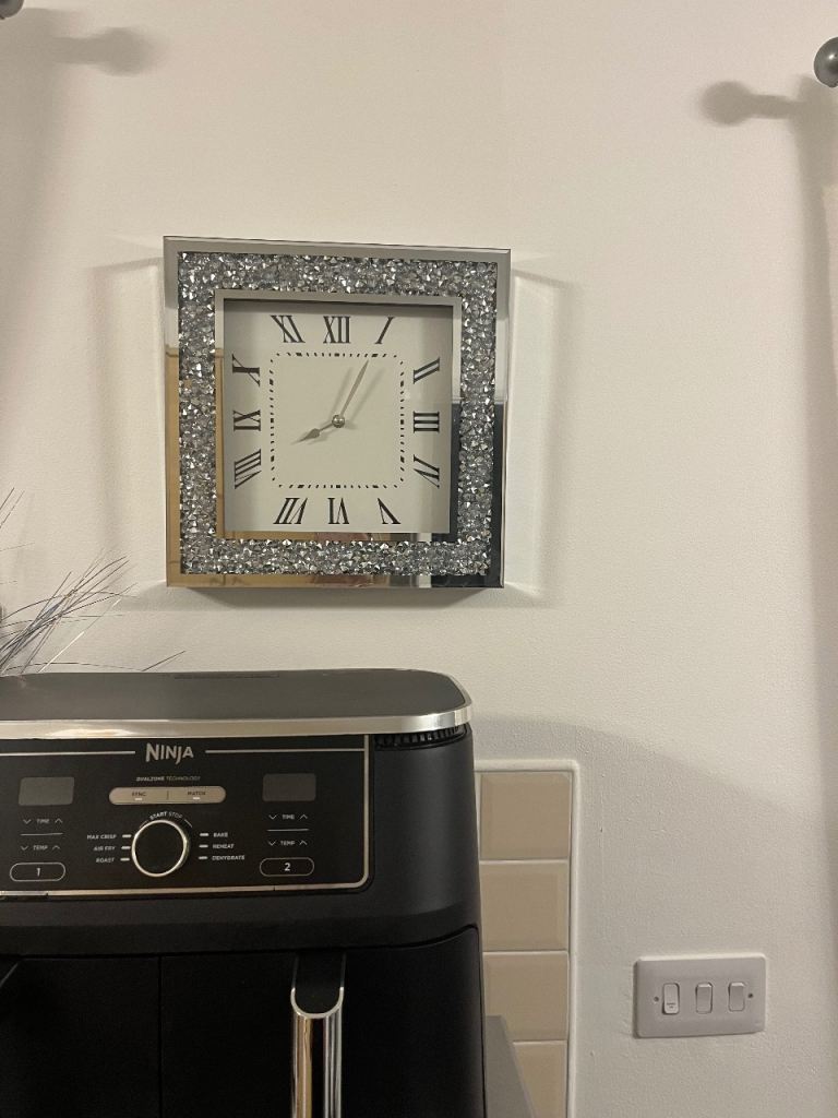 Beautiful wall clock excellent condition 13 1/2 in x13 1/2 in silver bling