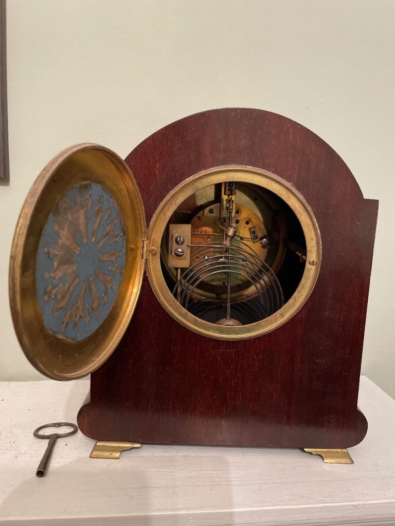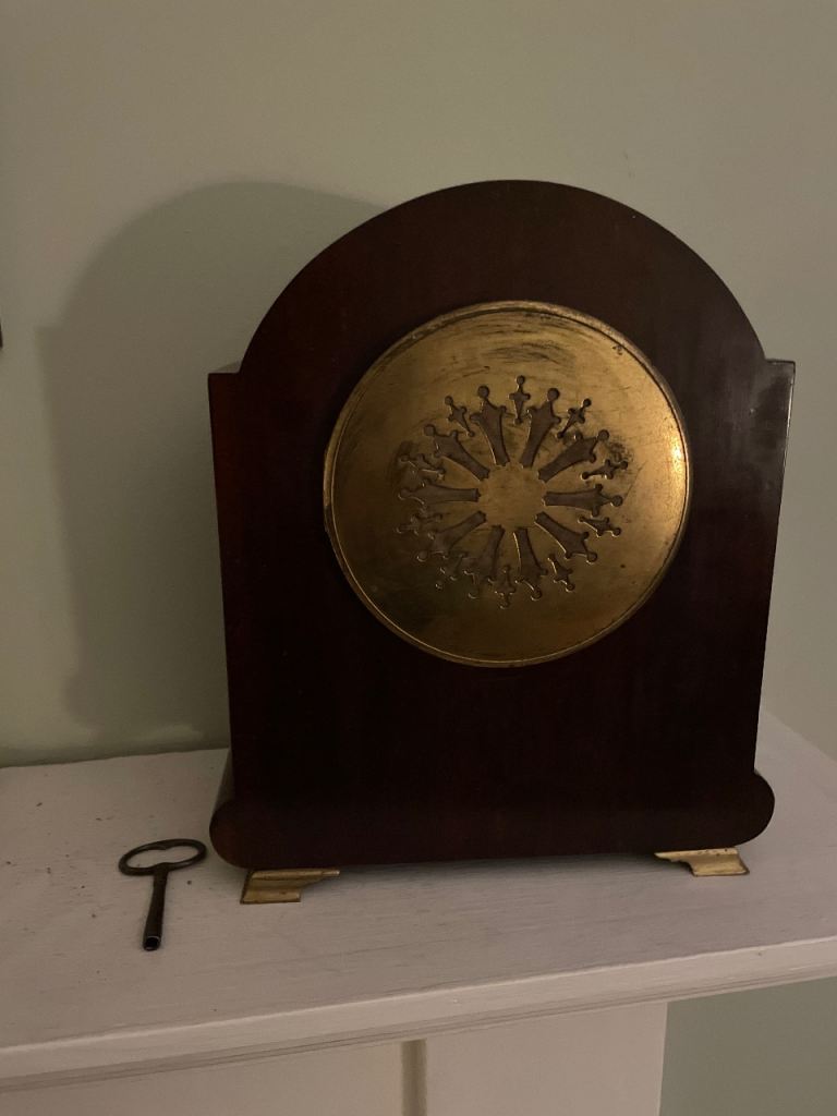 Elegant Edwardian mantle clock. Was working recently, may need a tune up now though. With key.