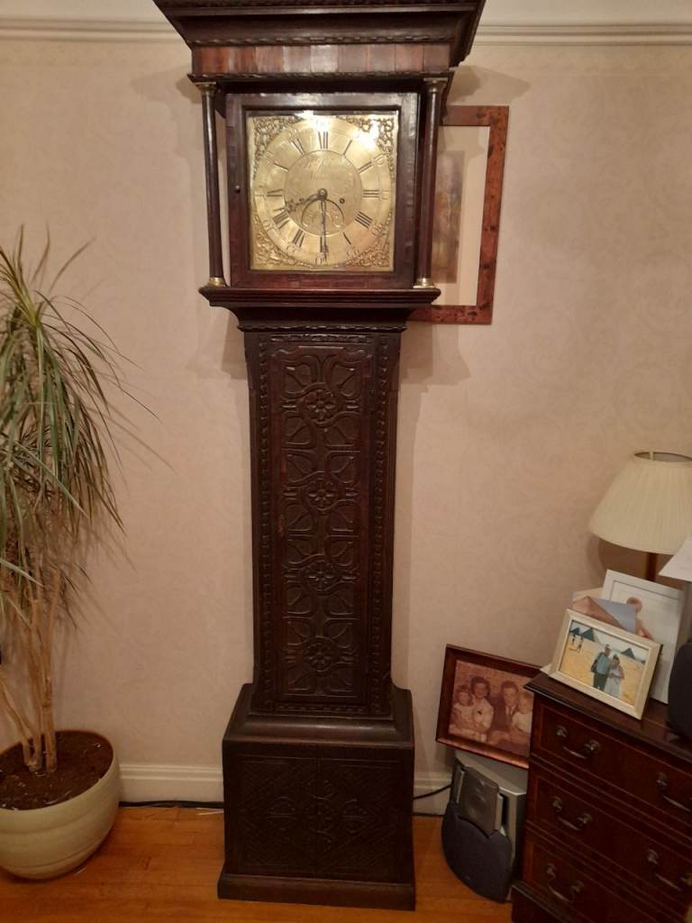 8 day oak carved clock, 1750 Robert Sidwell, Nuneaton, excellent condition, good time keeper, St Helens