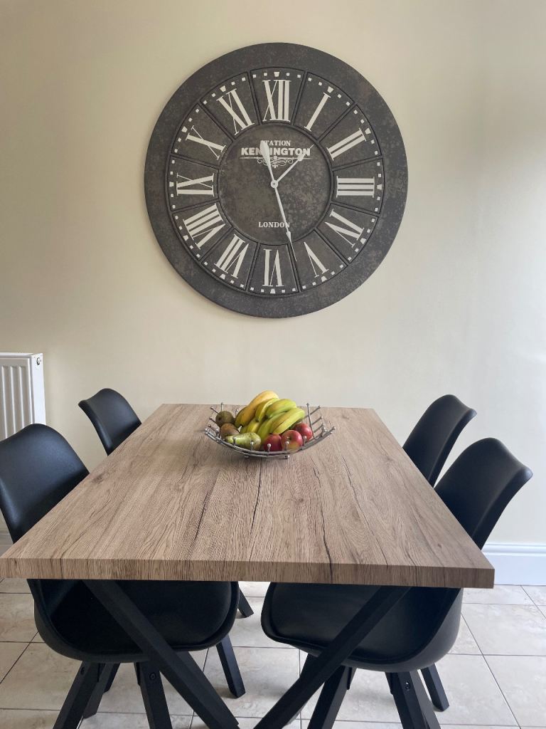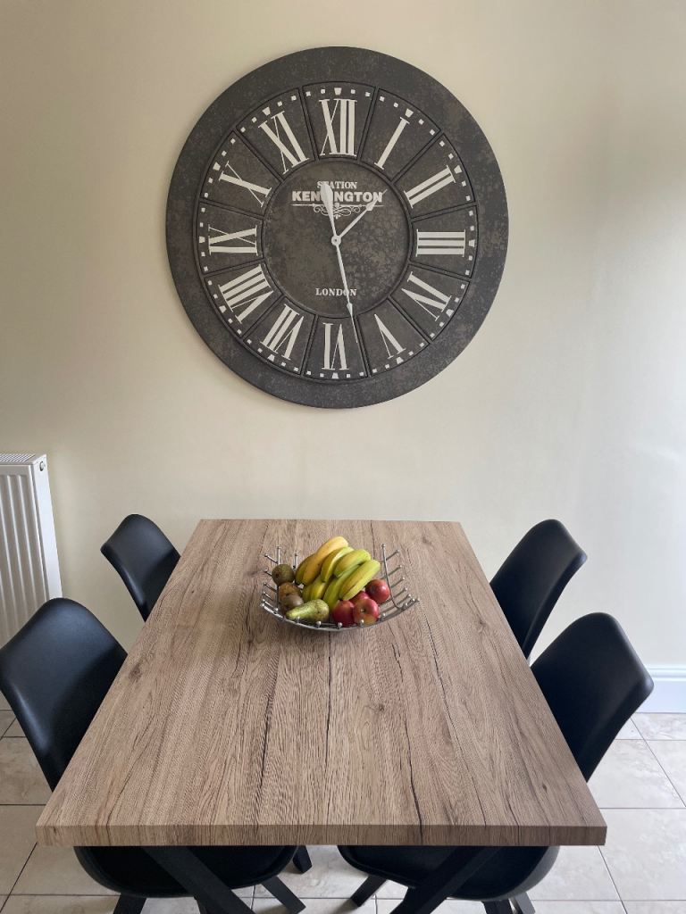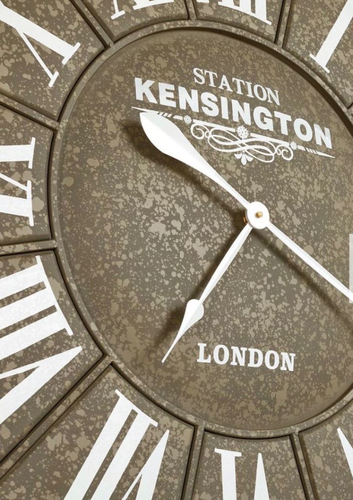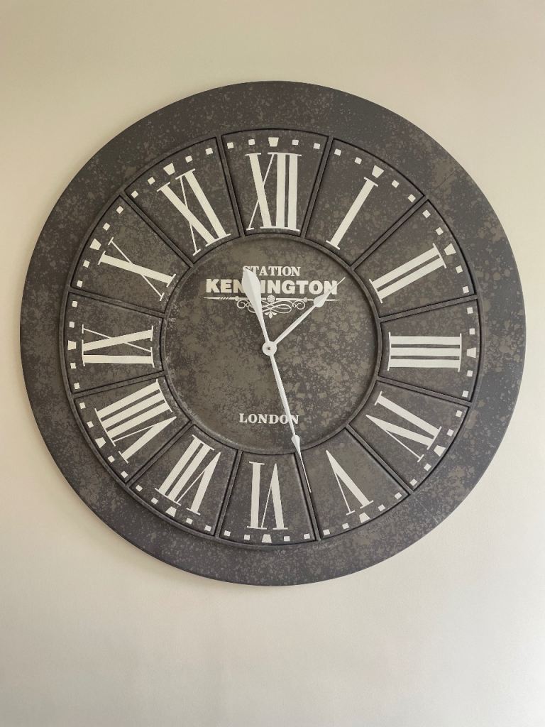 Vintage style station wall clock. Metal clock face and white Roman numerals and hands