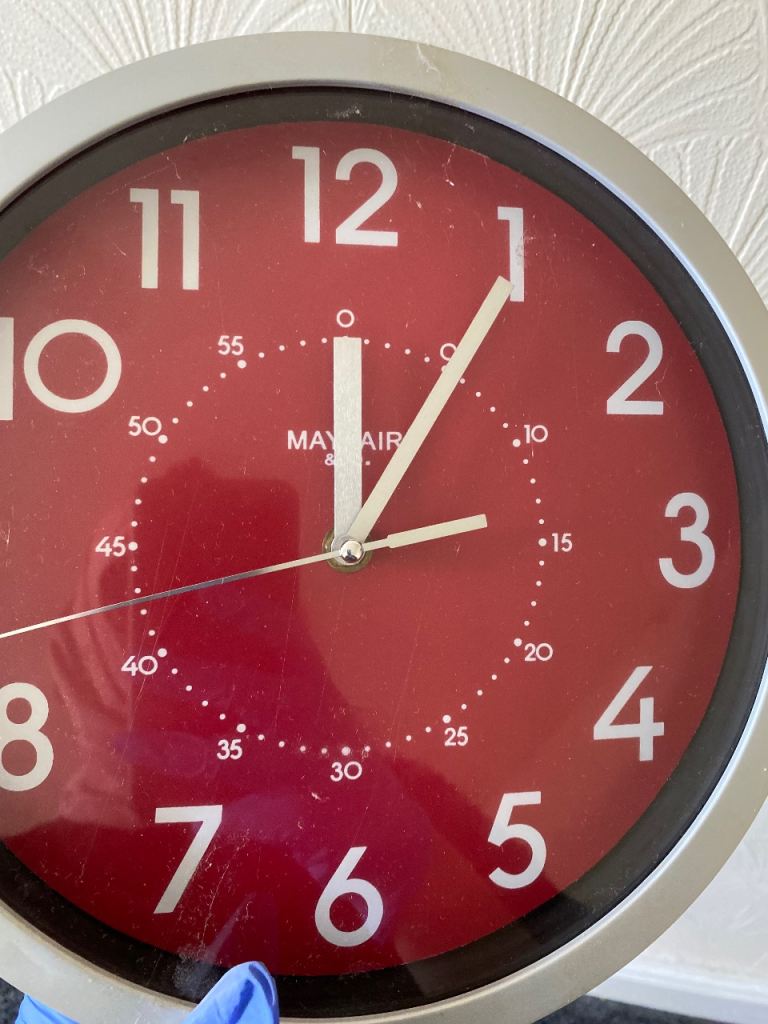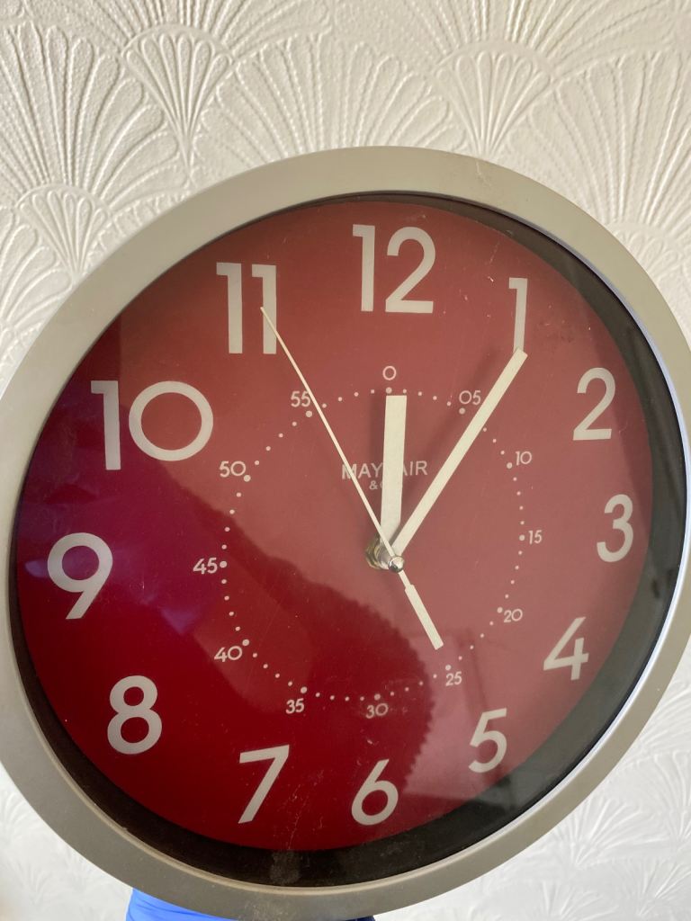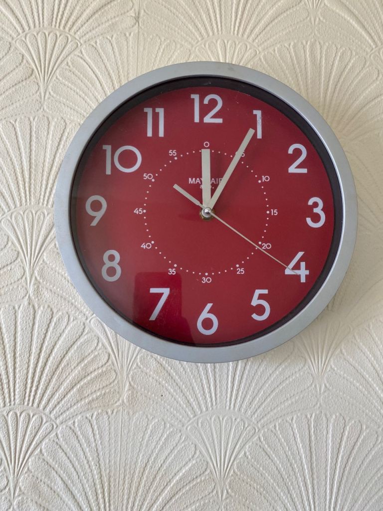 Posting for 1+ monthsMayfair & Co. Red Wall Clock – Modern Decor Silver & Red 30cm