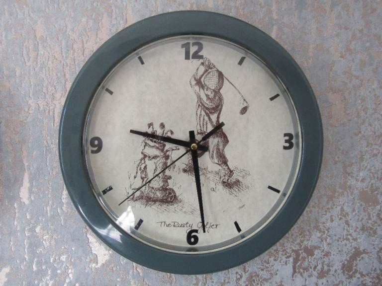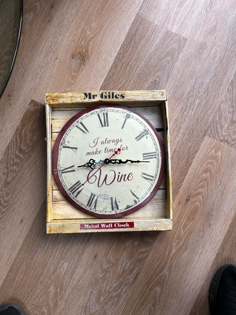 Mr Giles metal wall clock - with I always make time for wine graphics