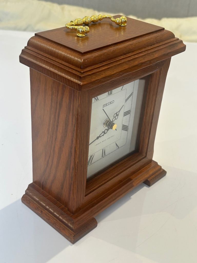 New Shelf/Mantle Clock “SEIKO” Radio Controlled, wood polished case, working & K-Time