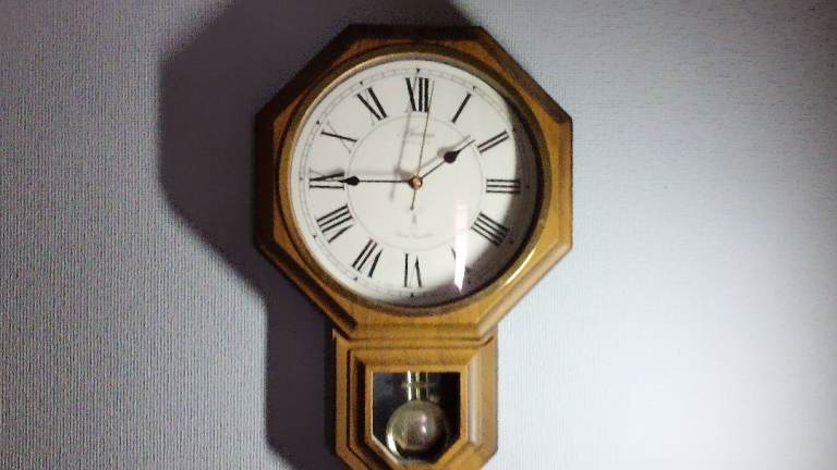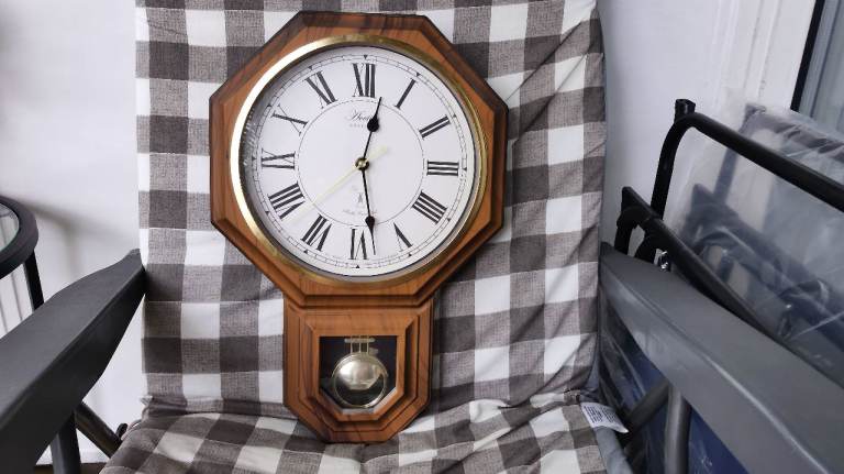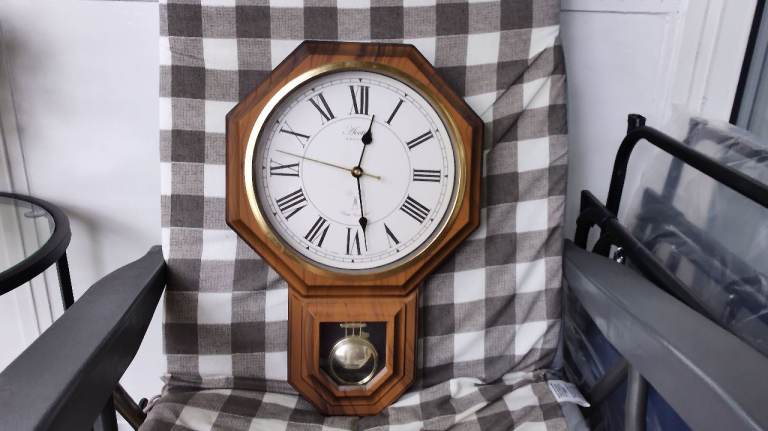 Large Mahogany & Gold radio controlled silent pendulum clock , measuring 17 x 12 inches pefect working order