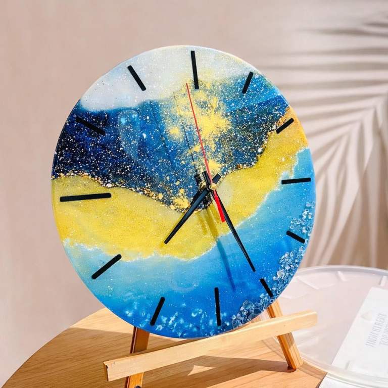 Handmade 40 cm resin wall clock with a unique ocean‑inspired design.Crafted with high‑quality resin, stones, and layered colour depth.Features Roman numerals and a smooth, glossy finish.Perfect for living rooms, offices, studios, or as a standout gift.Ready to hang. Collection in London or delivery available.