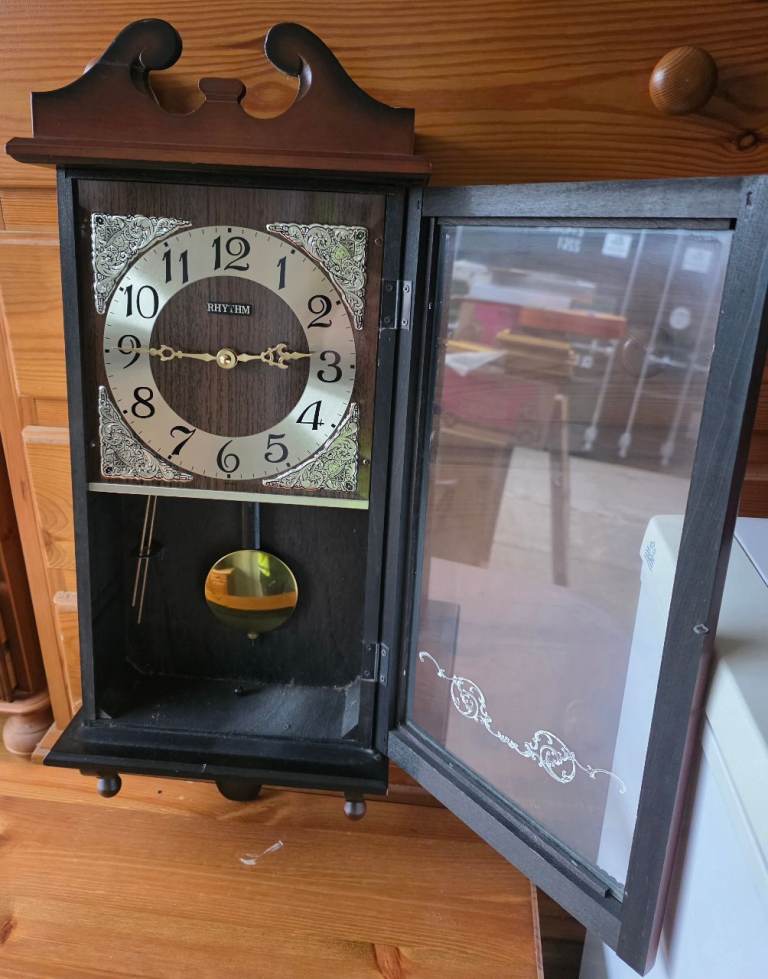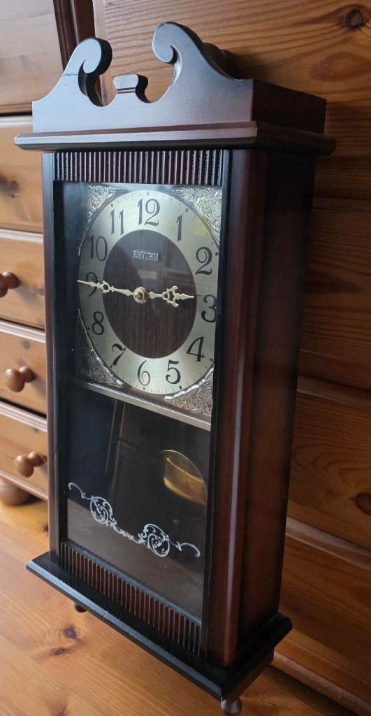 Rhythm wooden pendulum wall clock