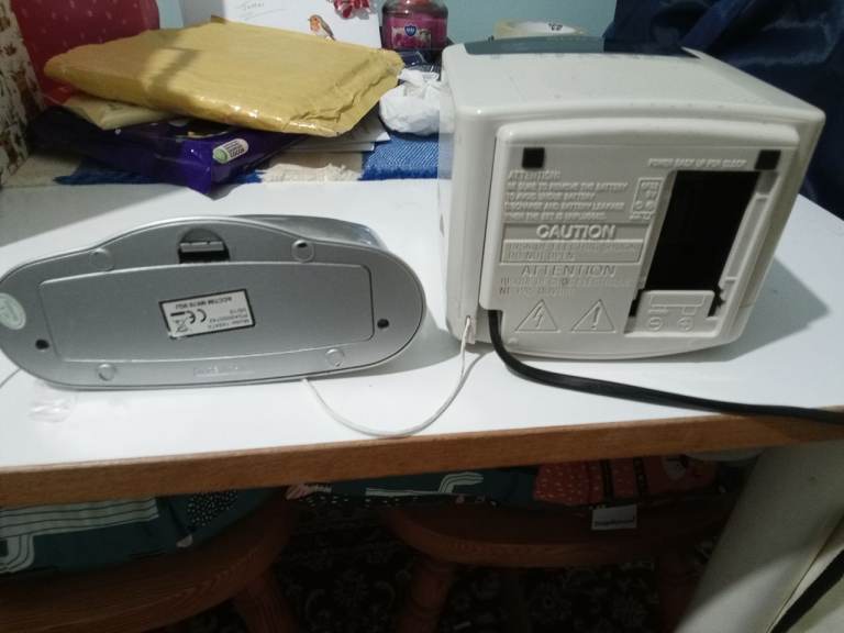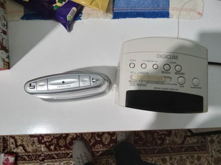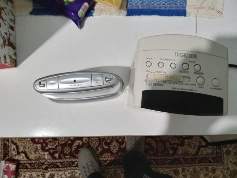 Vintage Sony Digicube radio alarm clock, working with lead but can be used with a battery. Also a Acctim digital battery alarm clock, with batteries, also working.