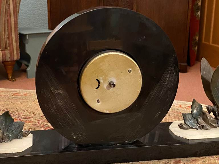 This is a very beautiful art deco mantel clock. All in excellent condition. It has its original wind-up key and a 36 hour movement that works perfectly.