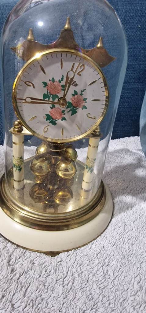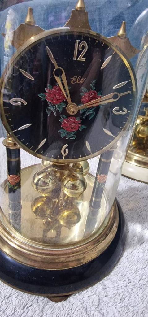 Used but still in good WORKING condition (ONLY BLACK CLOCK). Vintage Floral Clocks - S Haller Simonswald - Germany - 400 Day With Domes/keys. WHITE CLOCK - spares or repair (needs torsion filament). columns have yellowed (sun damage) - white clock. Base has yellowed/gone cream (sun damaged) - White clock. Brass on black clock has pitted. both have glass dome and key for winding. Glass dome - white clock has a few tiny chips on the open part. Both keys will fit either clock. COLLECTION ONLY. WE CAN DELIVER (WITHIN 60 MILES OF DERBY - DE21) (PLEASE CHECK MULES BEFORE BUYING.) BUYER TO PAY FOR FUEL UPON DELIVERY - (MILEAGE/PRICE WILL BE WORKED OUT UPON BUYING VIA A MESSAGE).