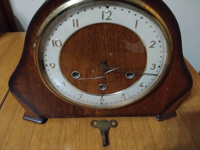 Selling a working order vintage Smiths mantle clock with nice Westminster chimes, note there is a crack in the glass.