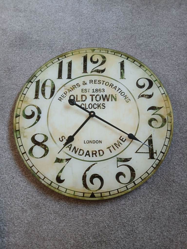 Old looking styleWall clock , made of glass,battery operated, 23 inch in diameter