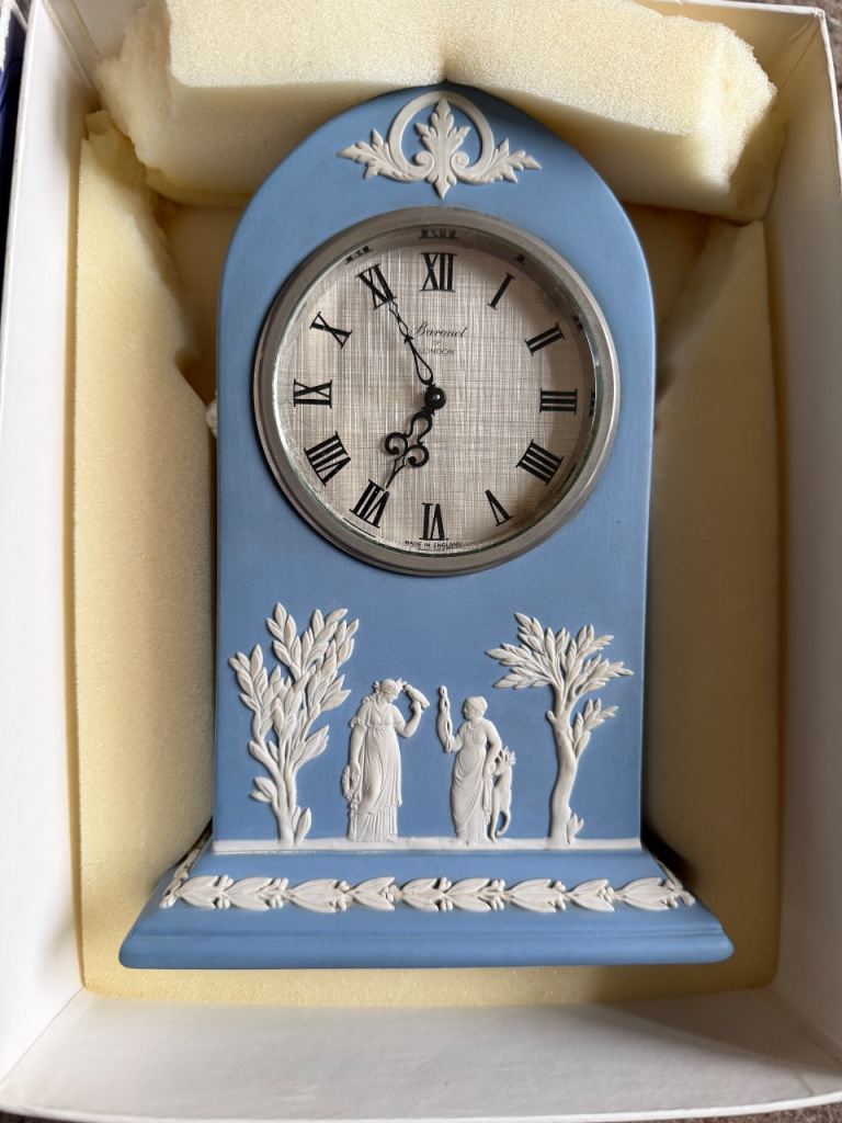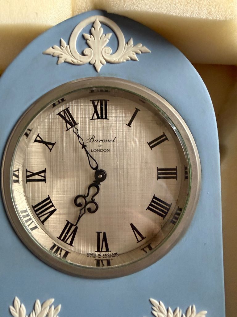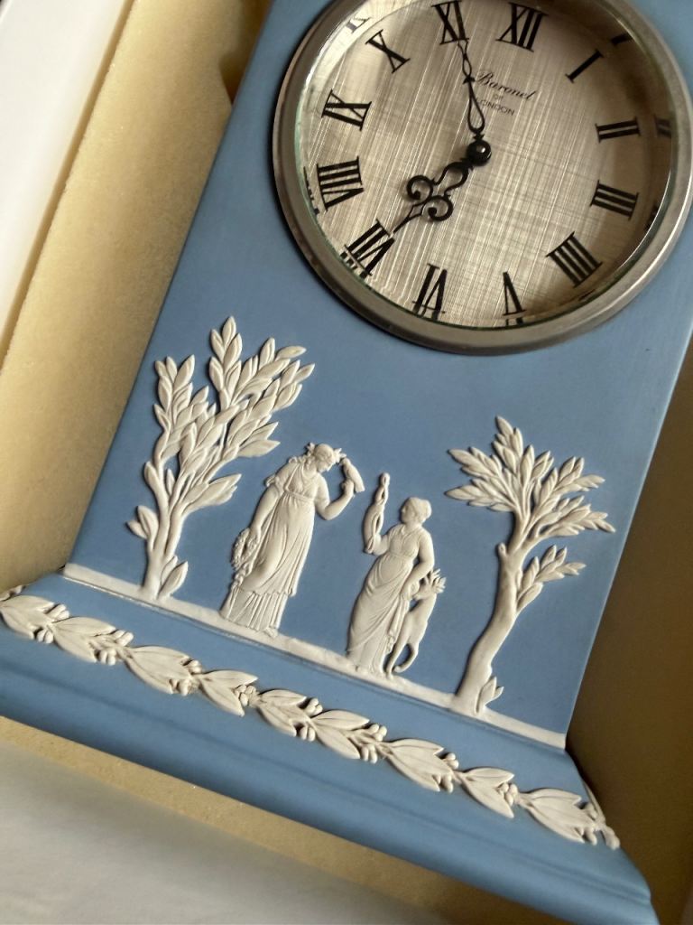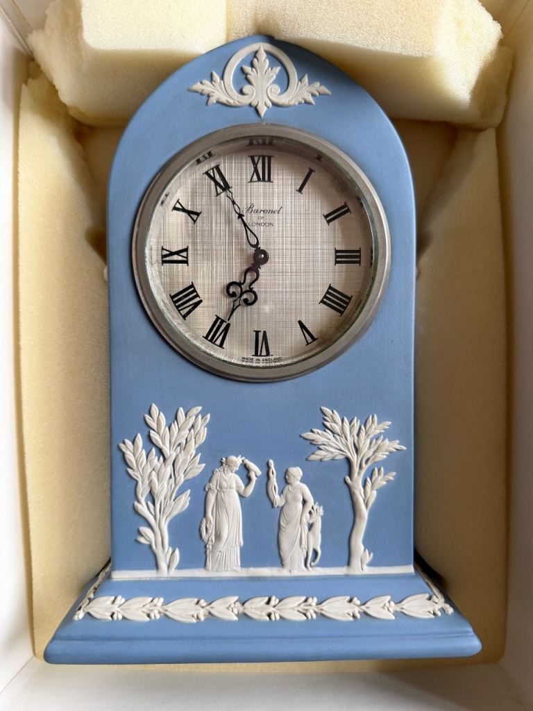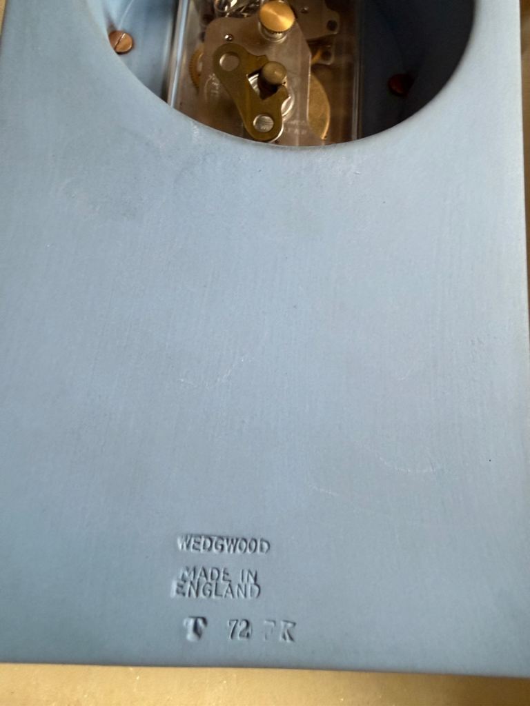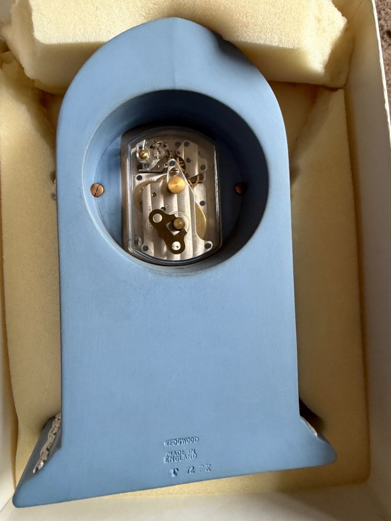 The clock has an impression of the Wedgwood backstamp, highlighting its authenticity and quality craftsmanship.