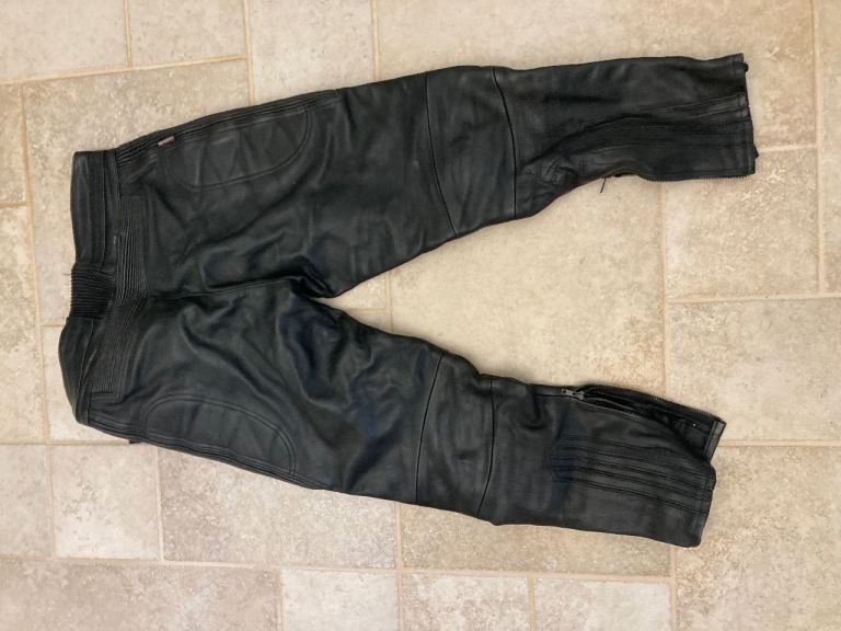 Posting for 11+ yearsA pair of Rhino Black Leather men’s motorcycle trousers