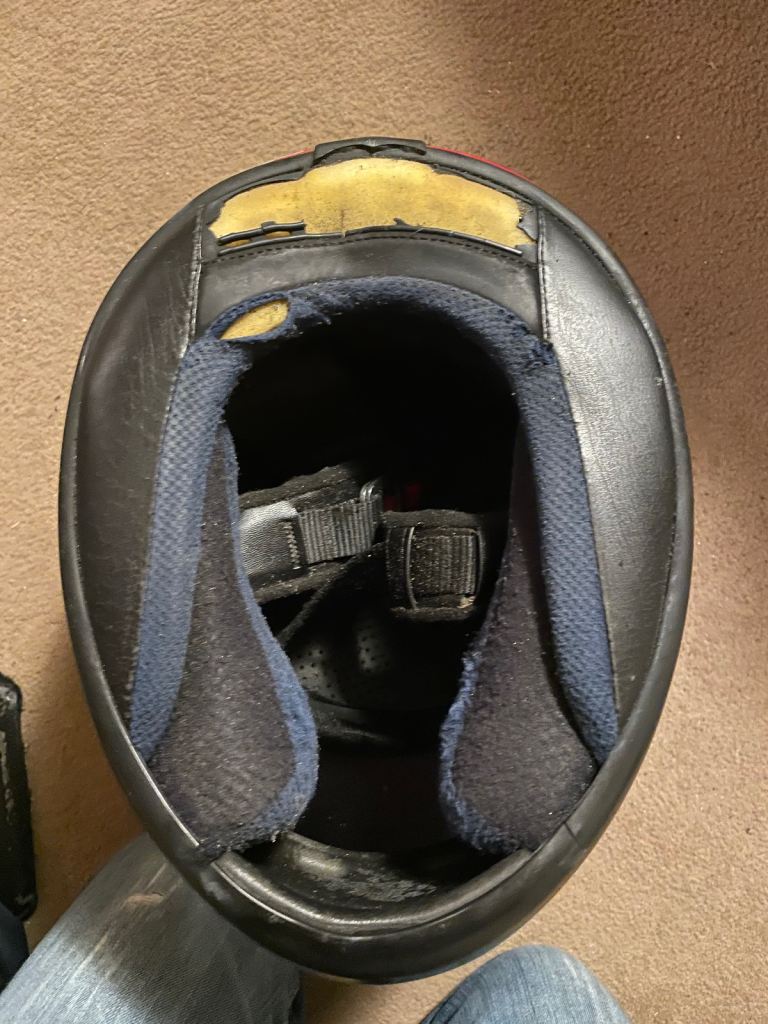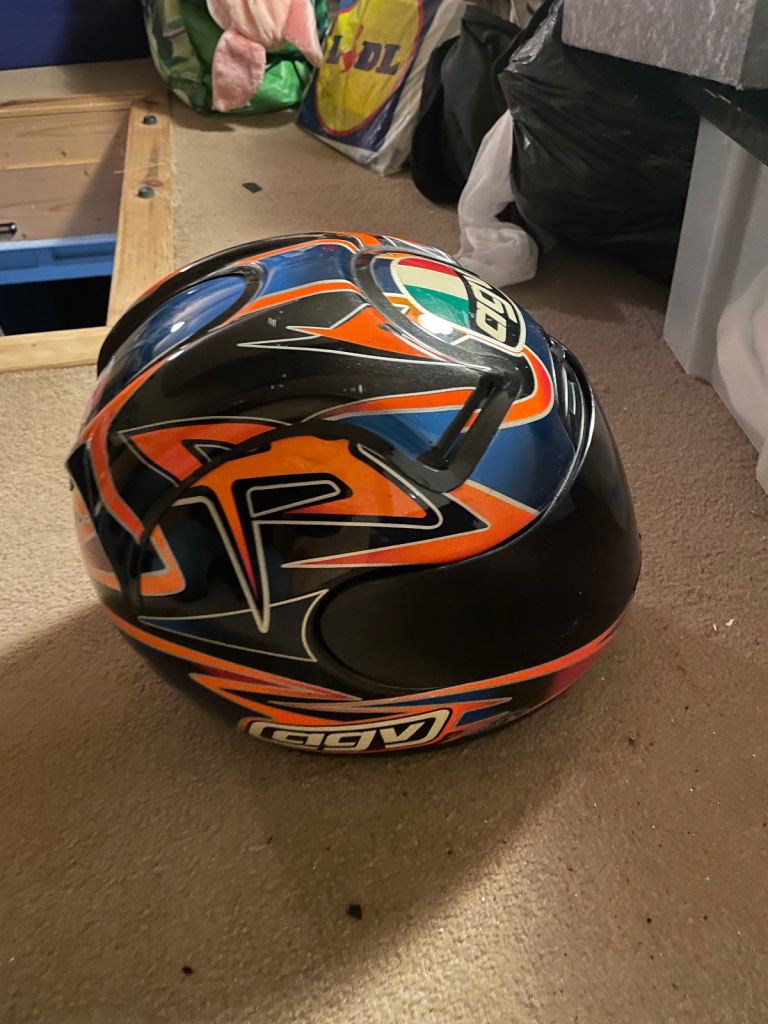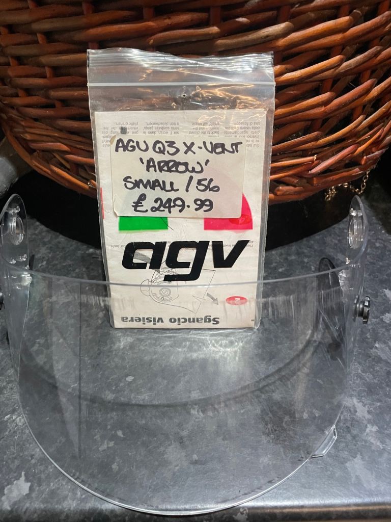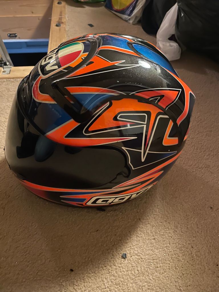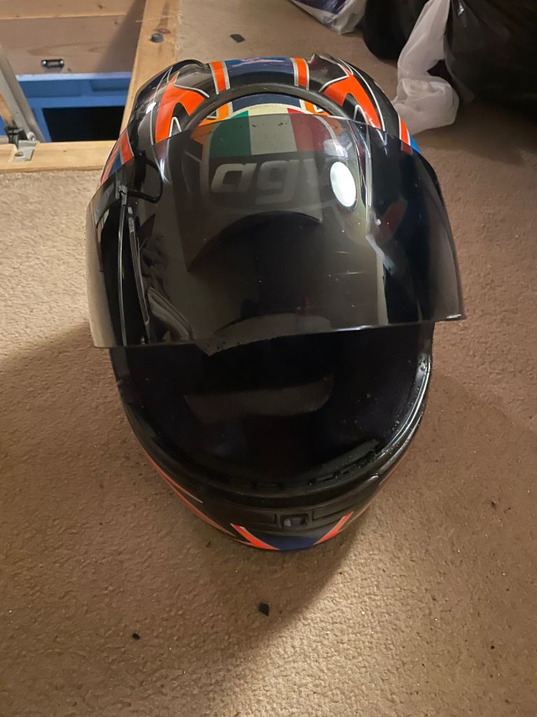 So I have had this helmet from new and the padding inside is completely and utterly perished. The shell itself has a few marks but otherwise in very good condition. It’s a good looking helmet with a black race visor and comes with the clear visor as well. Again this is not a safe helmet to wear due to its age.