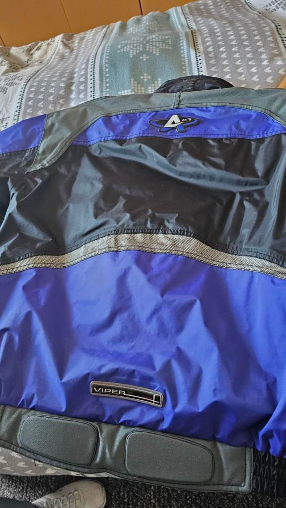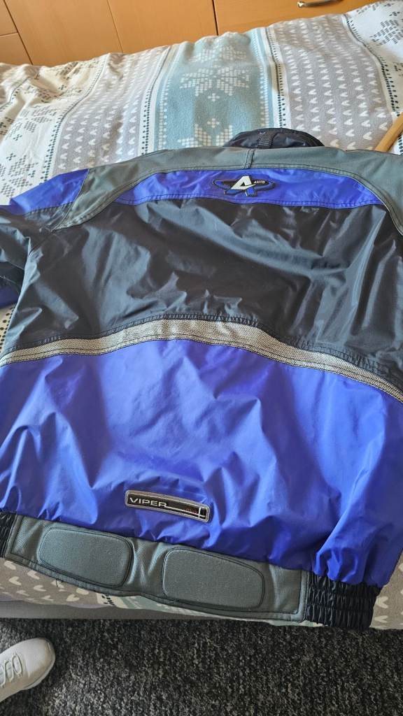Motorbike jacket in very good condition, waterproof, armoured, from a pet and smoke free home. Size L collection only Perth