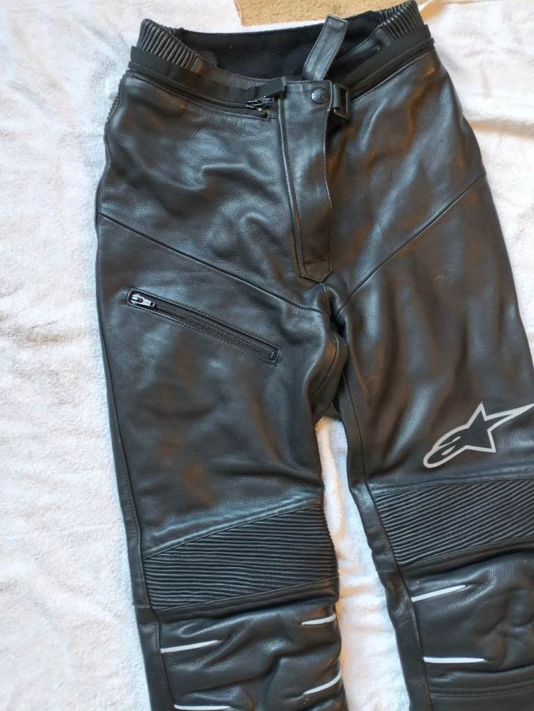 Ladies Alpinestars leather motorcycle trousers. Size EU 42 which is equivalent to US 4 or 26" waist