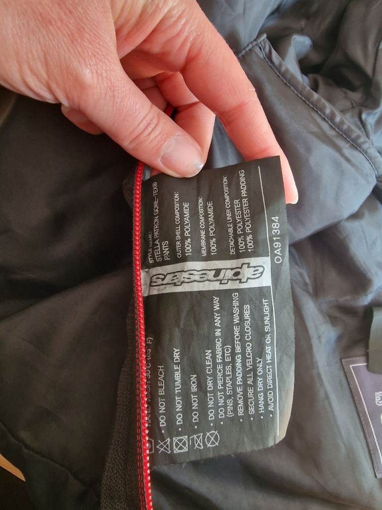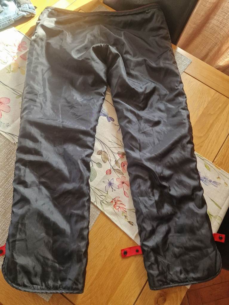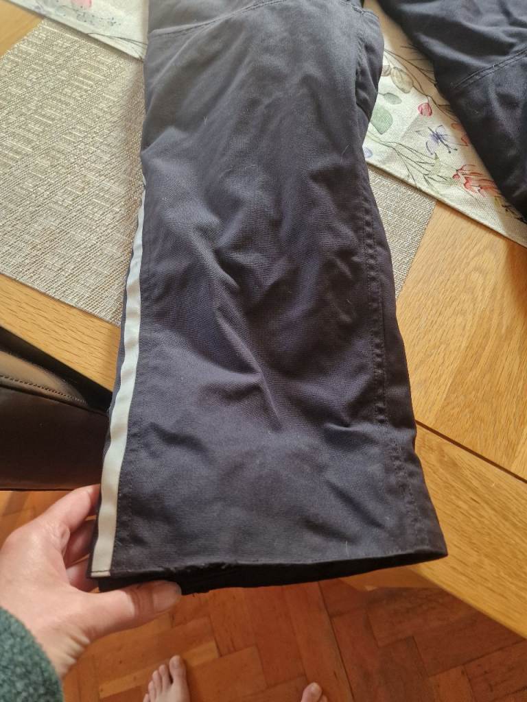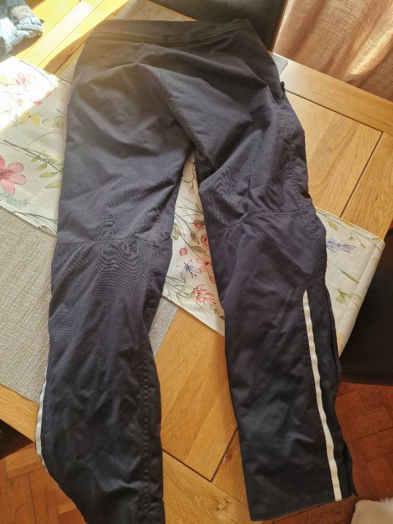Woman's textile motorcycle Gore-tex trousers, only selling because I've sold my motorbike. This is an L size but worth noting that sizing differs. Slight wear on the one leg, some features: